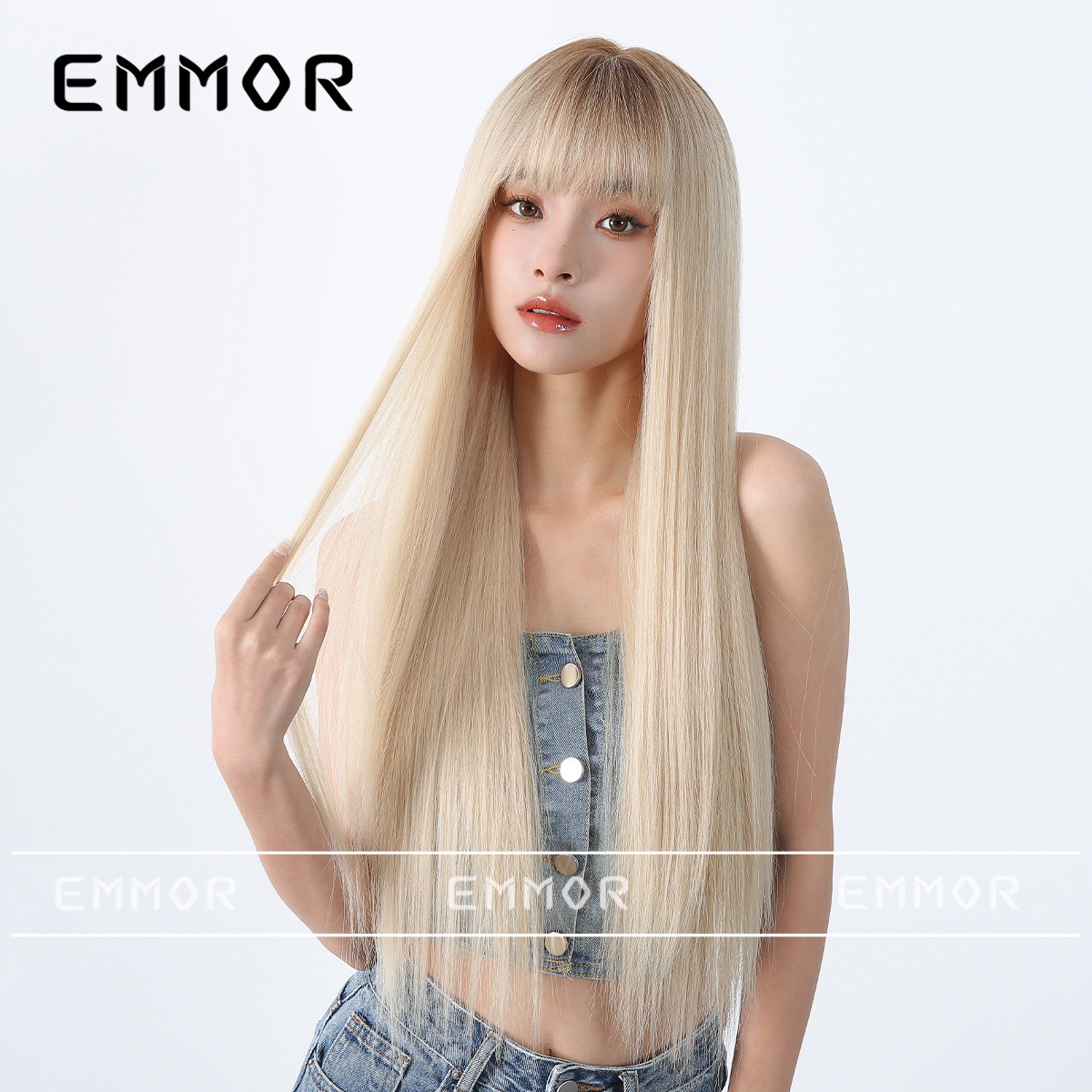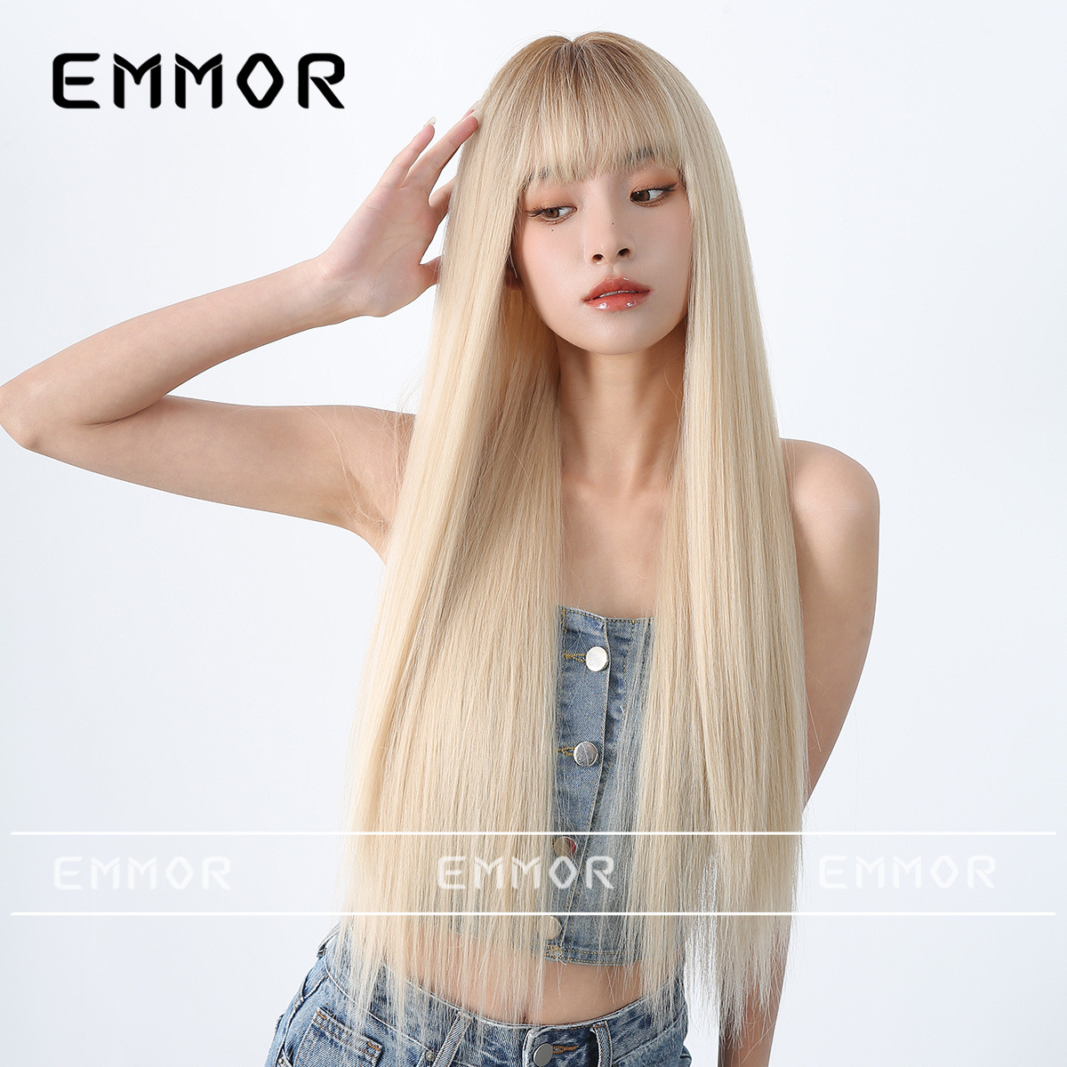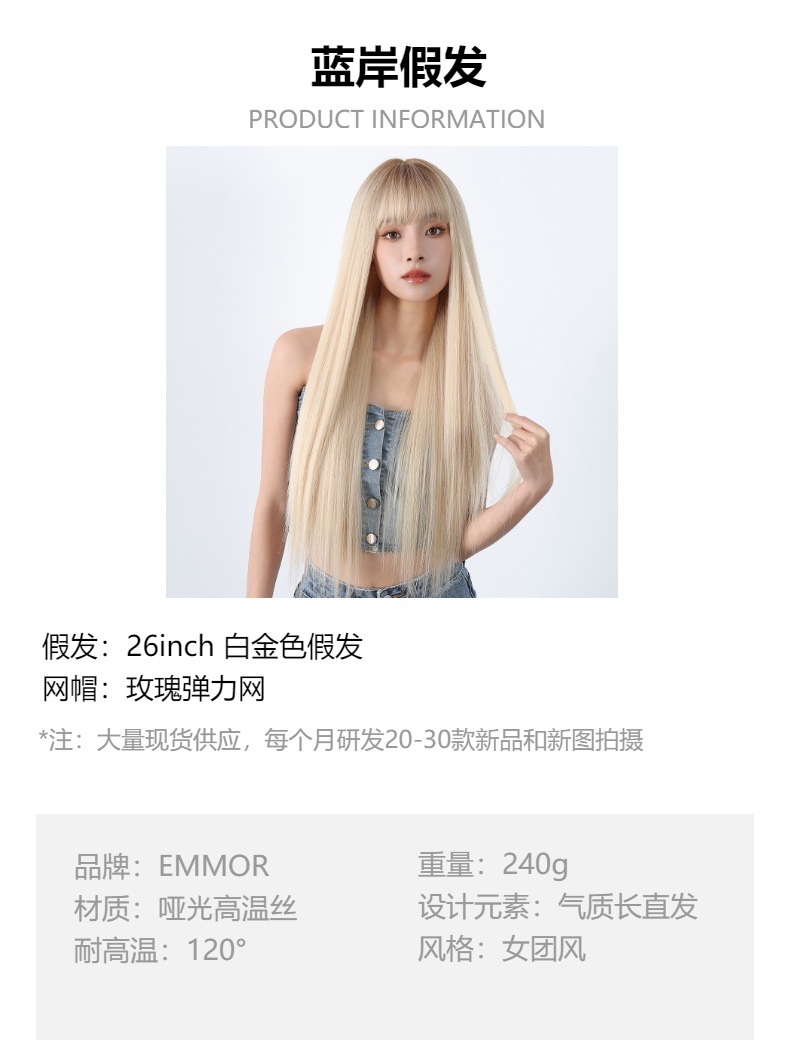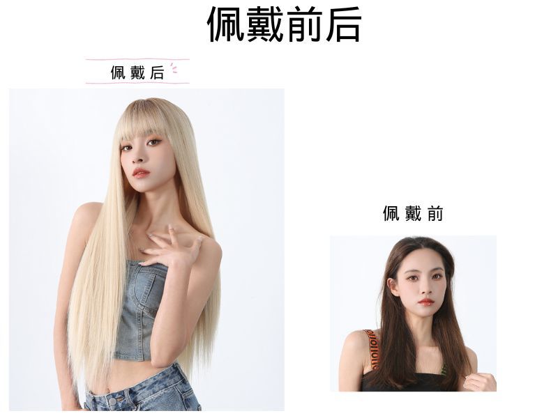 Peluca de celebridades de internet de estilo coreano cabello largo femenino flequillo de dibujos animados cabello recto puro quiere mostrar el color del cabello blanco simulación natural peluca cubierta de la cabeza