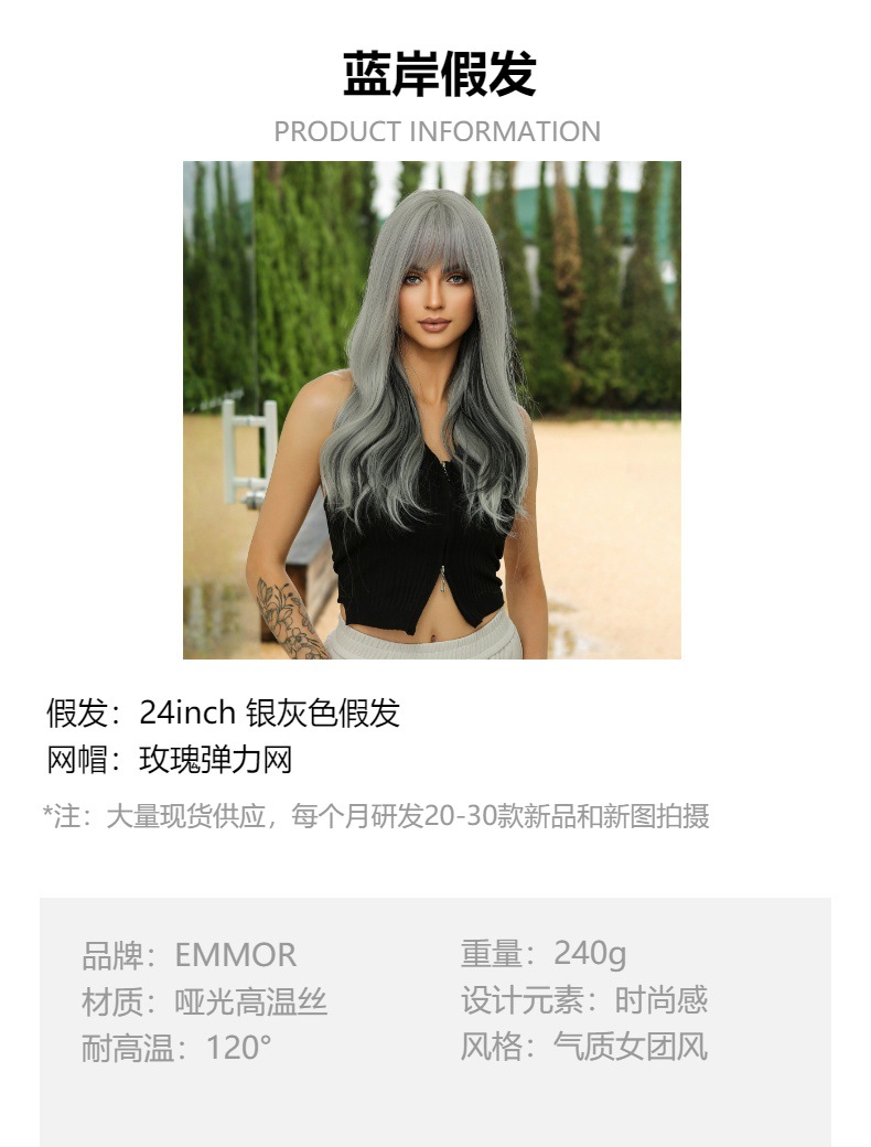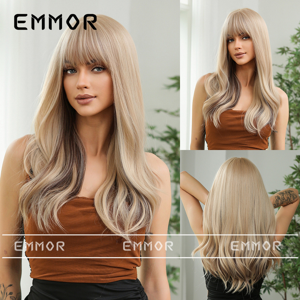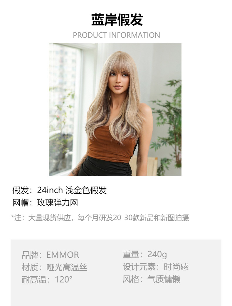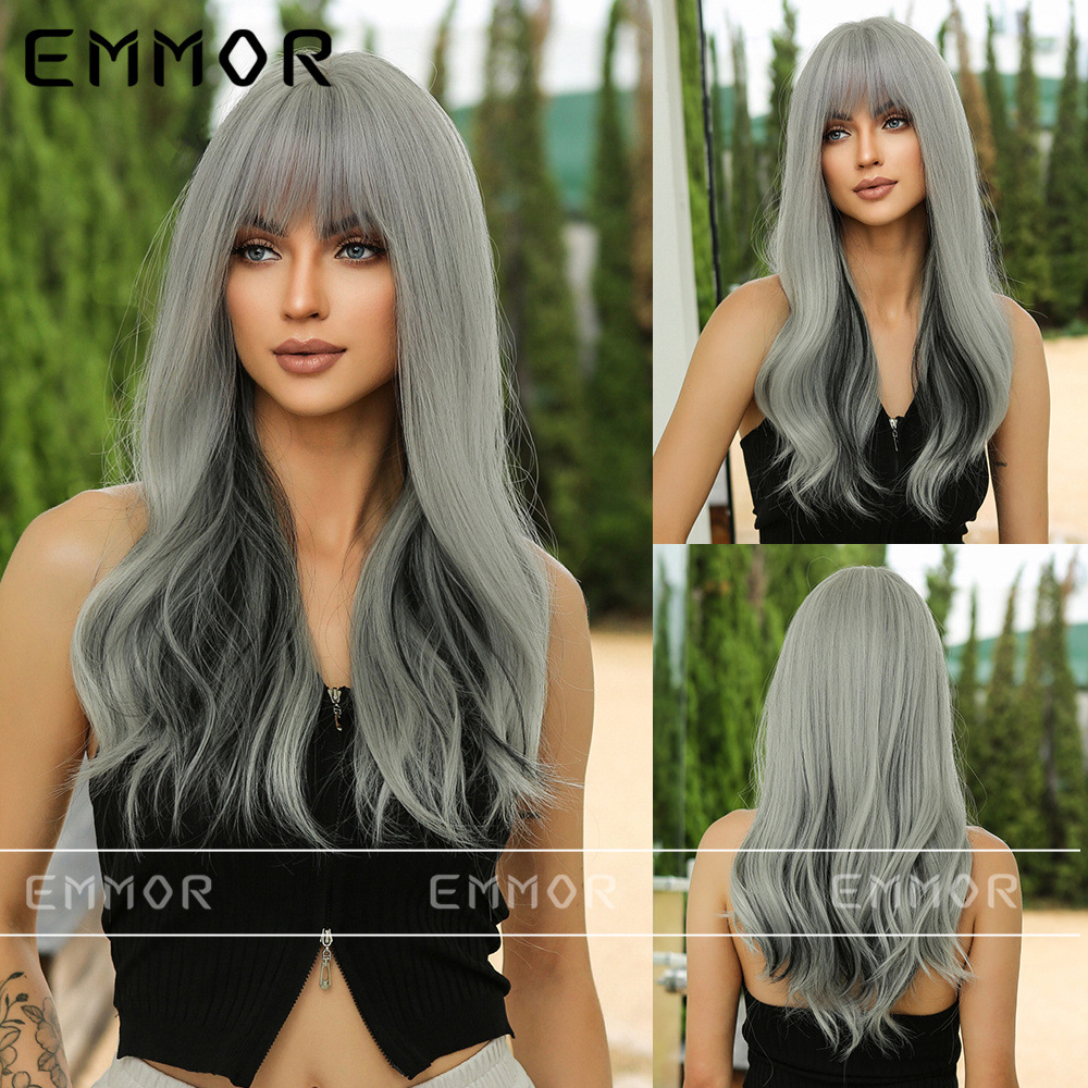 Elegante up Air Bangs color largo Pelo Rizado diario Fecha de fiesta atmósfera llena simulación peluca cabeza cubierta