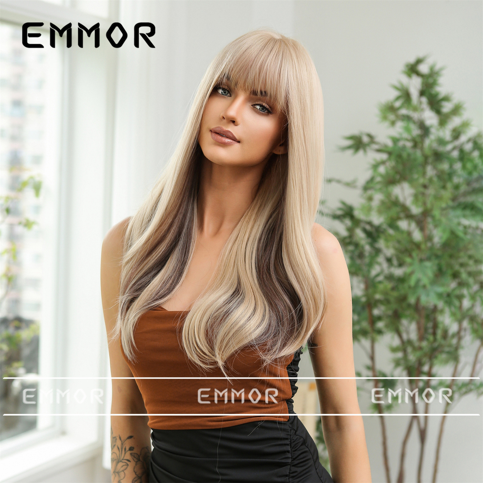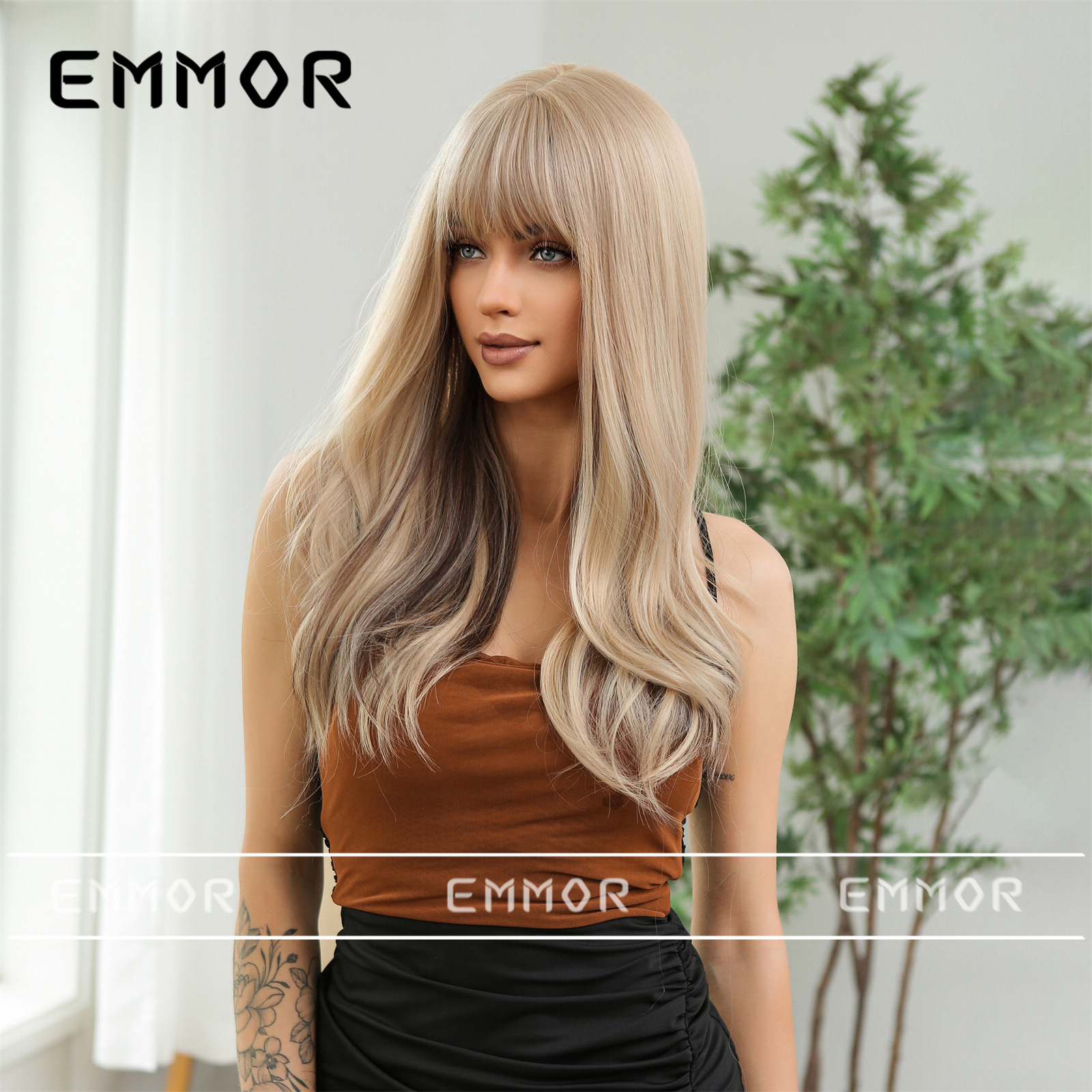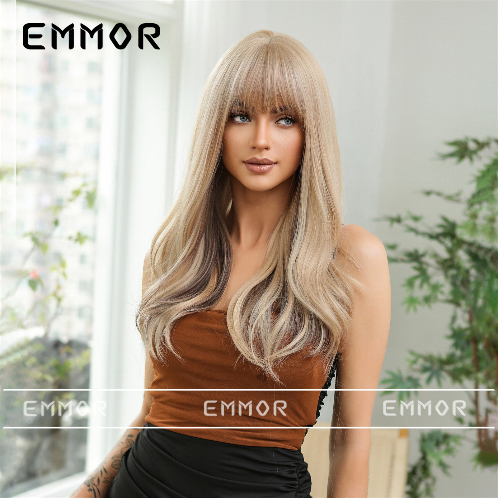 Elegante up Air Bangs color largo Pelo Rizado diario Fecha de fiesta atmósfera llena simulación peluca cabeza cubierta