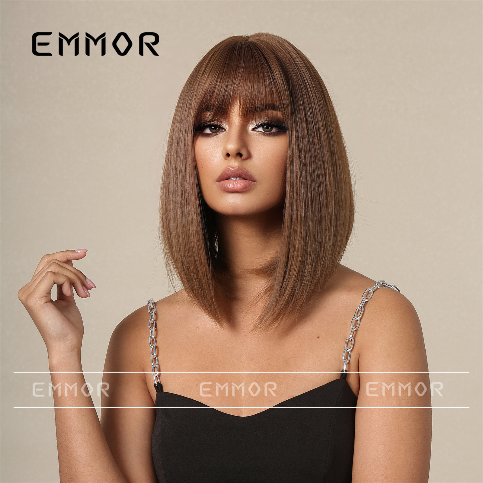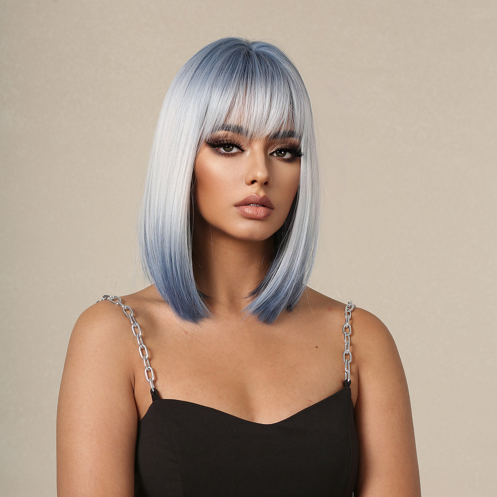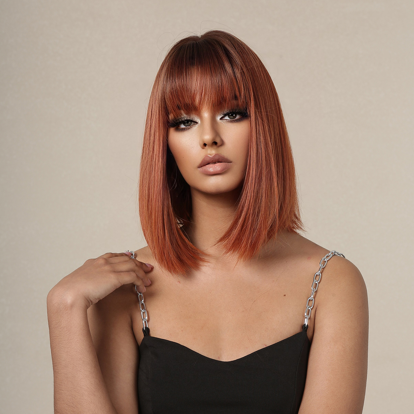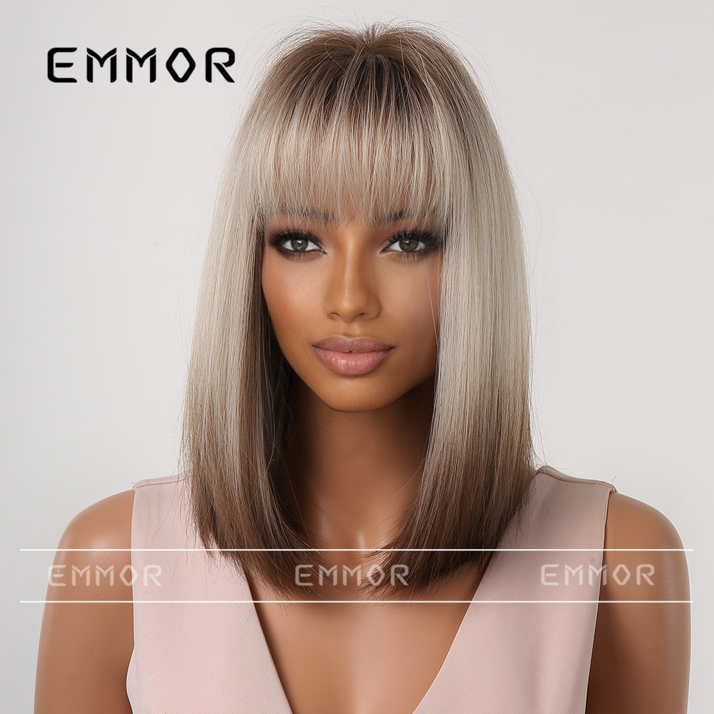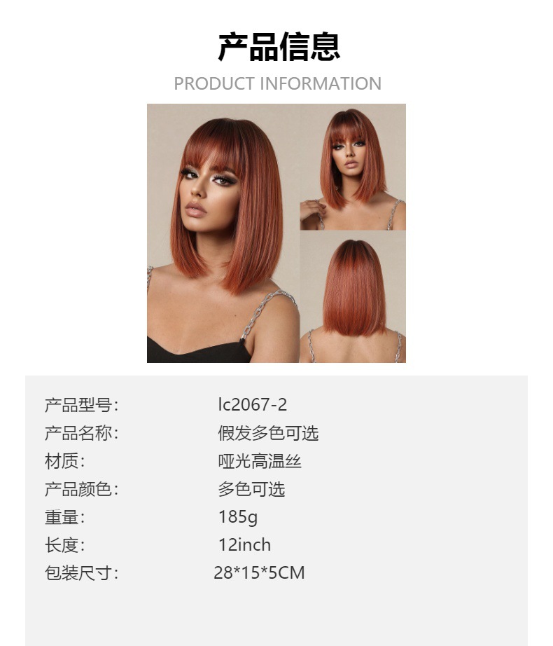 Nuevo verano transfronterizo punto pelo corto recto gradiente naranja aire flequillo onda corta cabeza europea y americana peluca para las mujeres