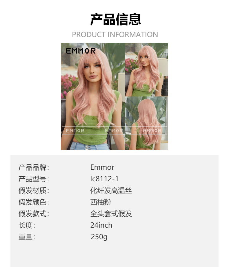 Emmor Internet celebridad pomelo rosa femenina grupo pelo Color peluca hembra recta Bangs largo pelo rizado natural alta temperatura resistente cubierta de la cabeza completa