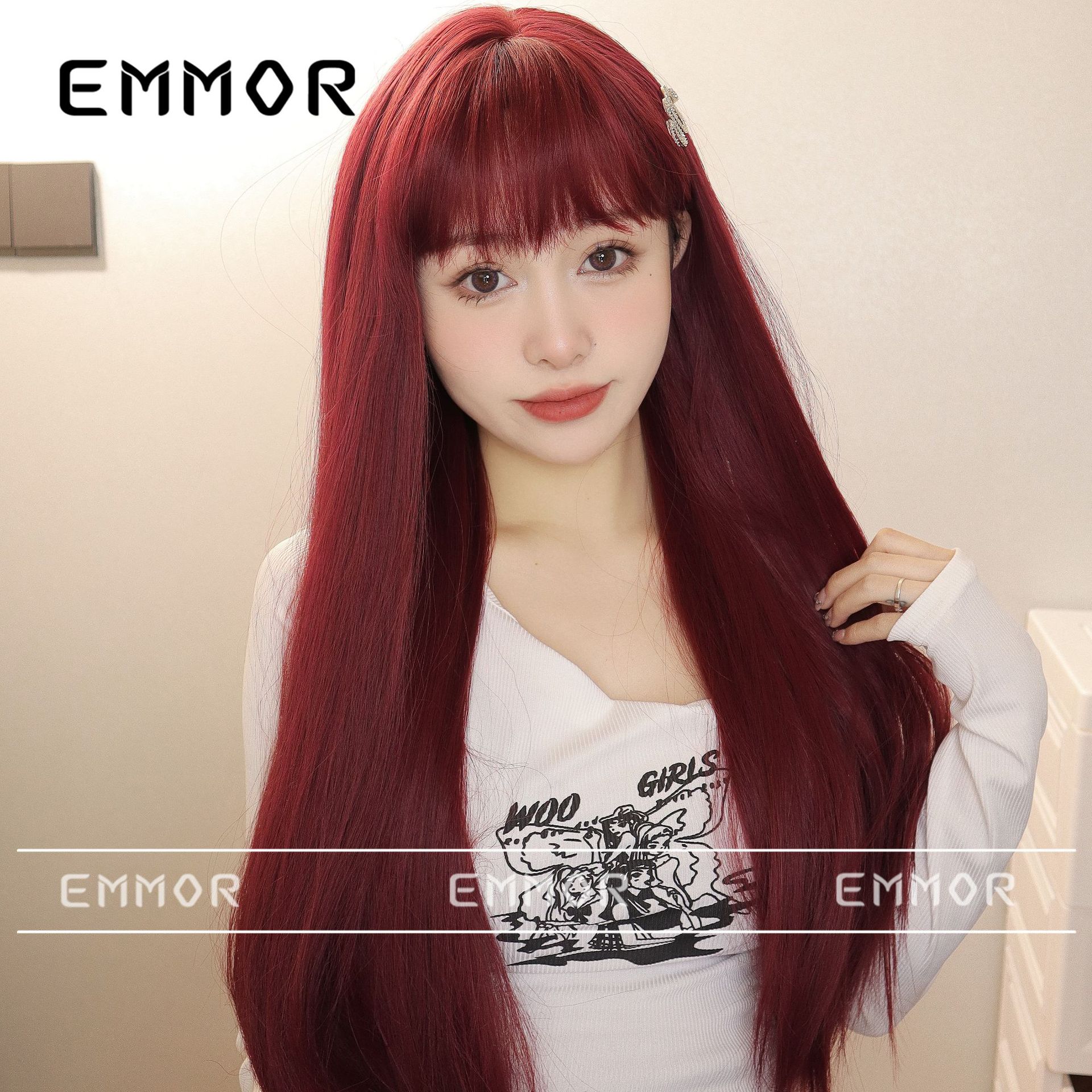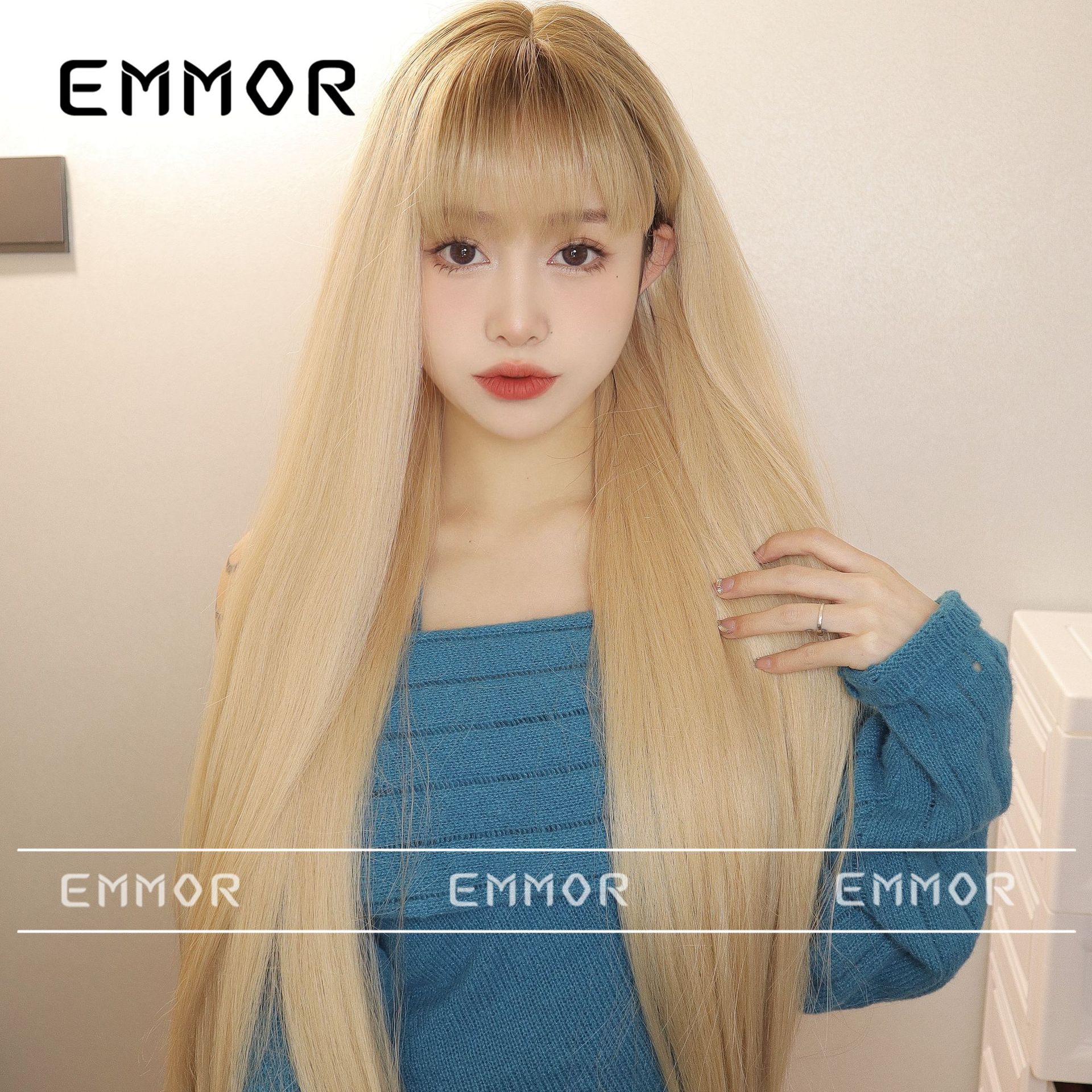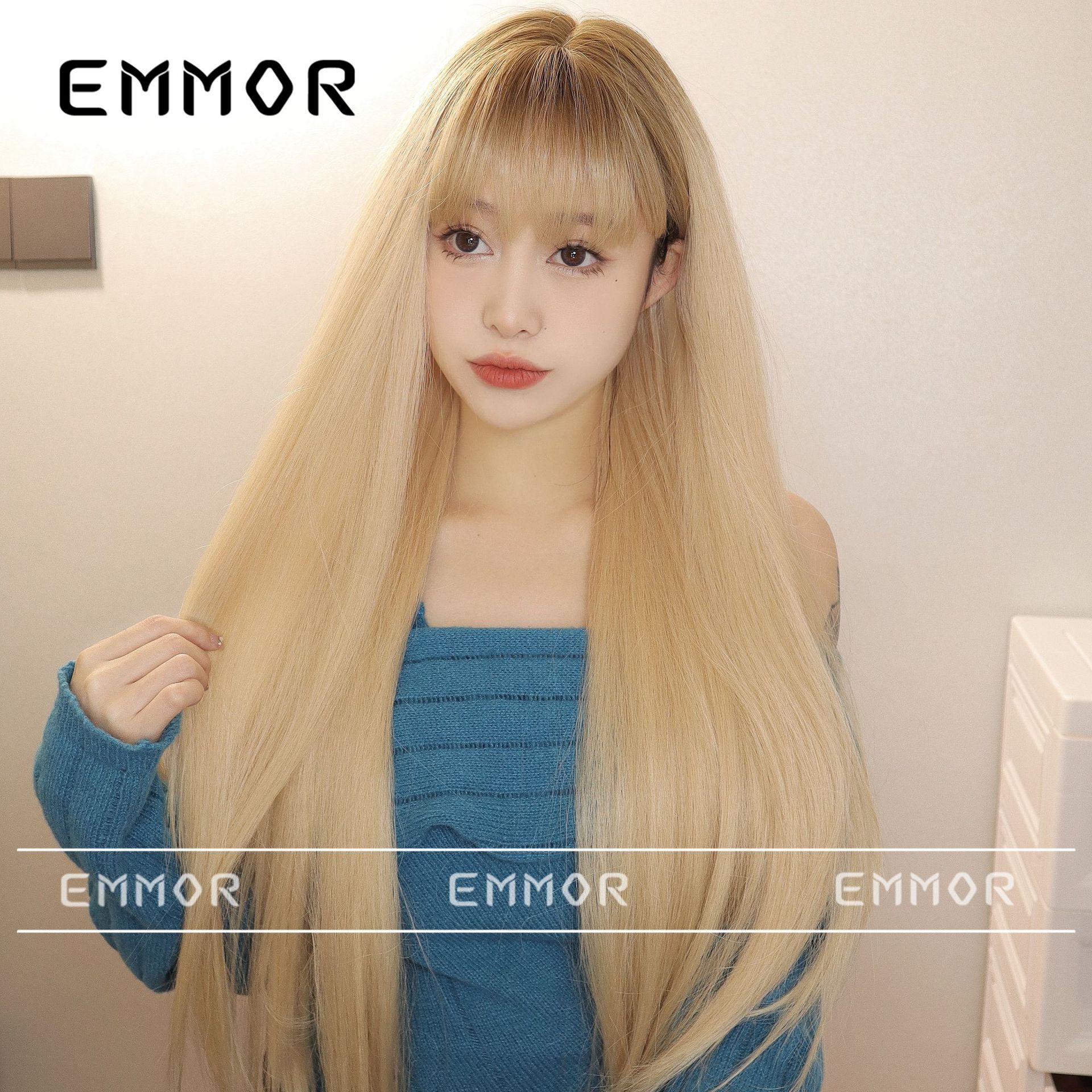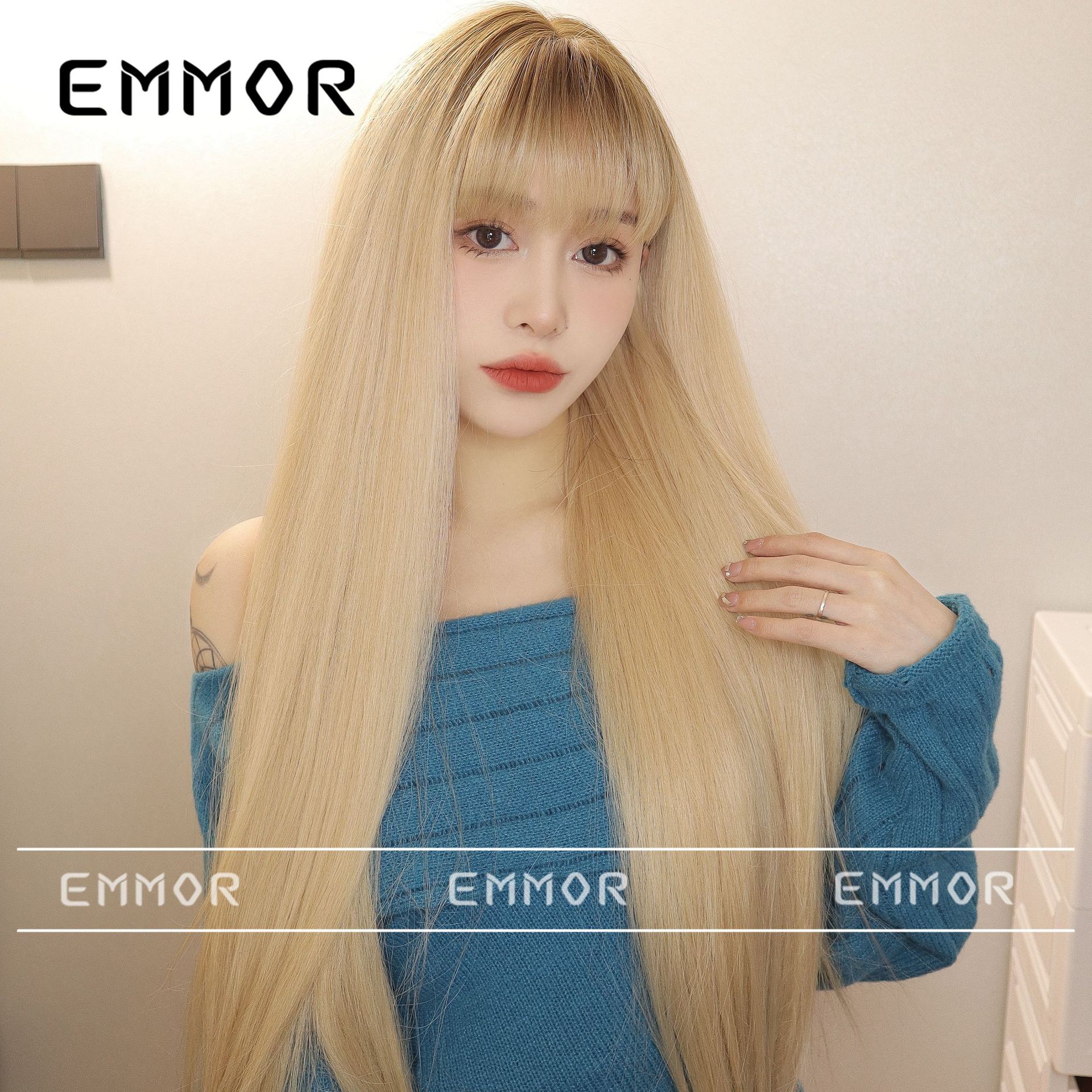 Estilo japonés y coreano nueva peluca femenina recta Bangs Pelo Largo cubierta completa de la cabeza natural mullida reducción de la edad peluca Lolita