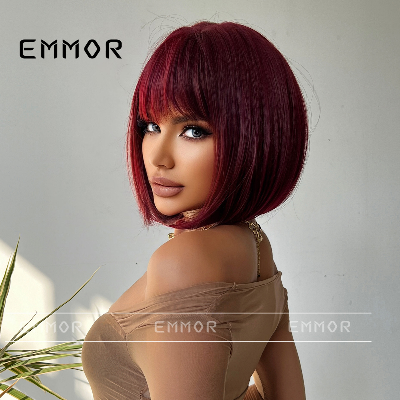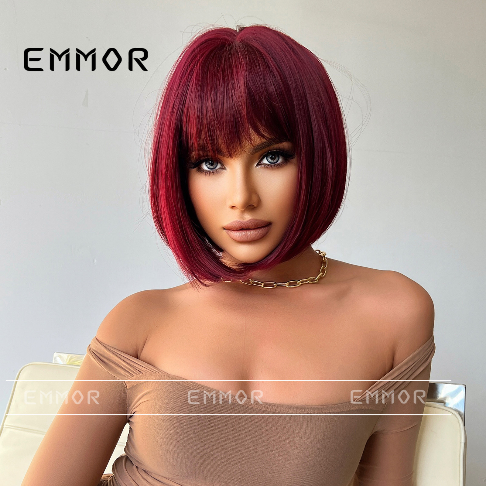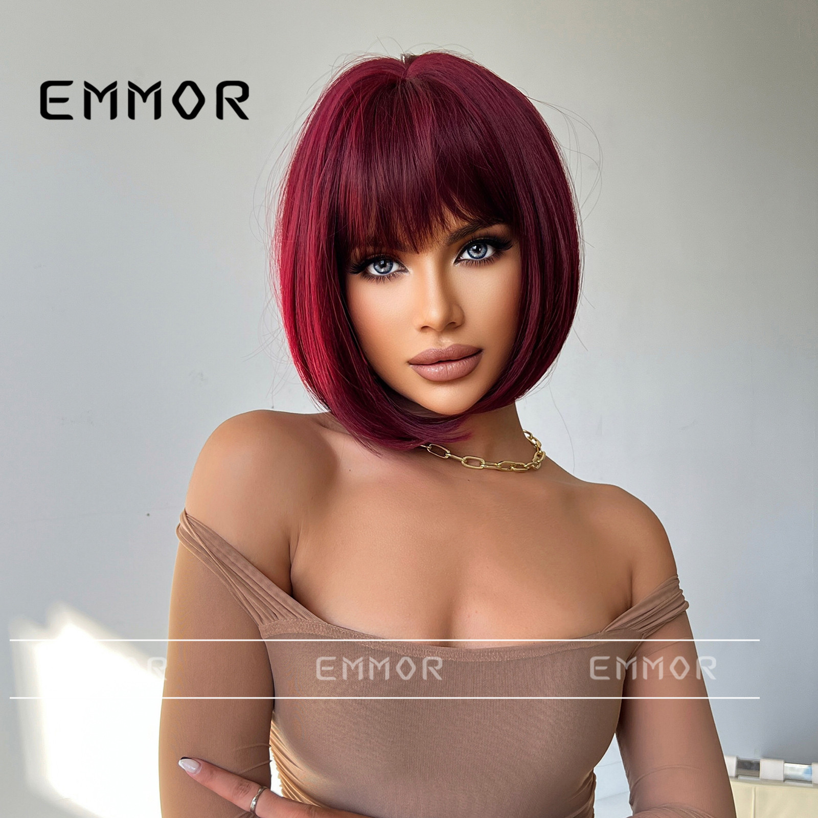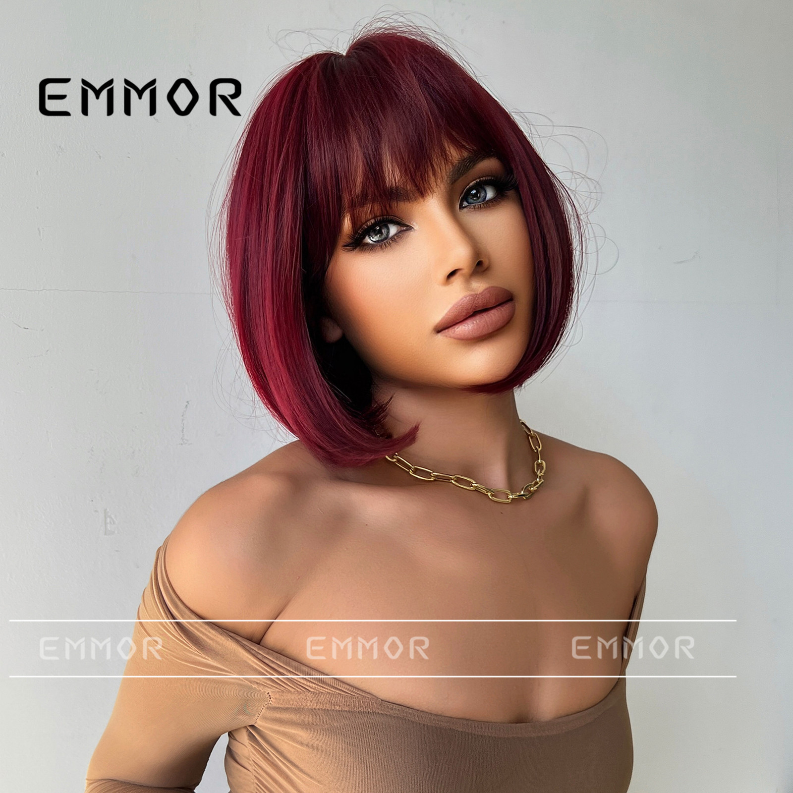 Europa y América Internet rojo onda cabeza peluca aire flequillo vino rojo temperamento Cosplay Pelo Corto peluca cubierta de la cabeza completa