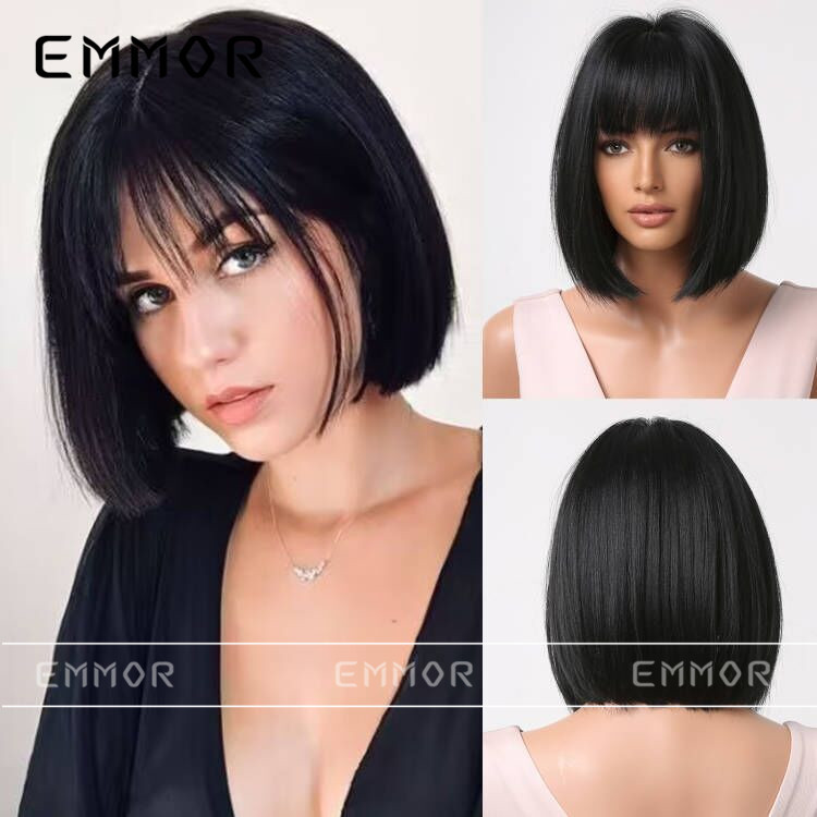 Bobo cabeza Peluca de pelo corto Mujer reducción de la edad europea y americana 2023 moda nueva cabeza completa cubierta Peluca de niña negra