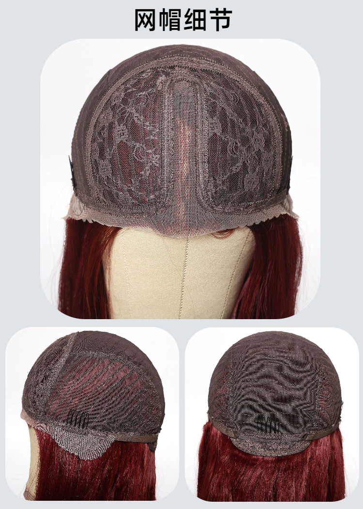 Fábrica en stock europeo y americano cabeza completa cubierta medio gradiente rojo grande onda larga Pelo Rizado pequeño T importado peluca del cordón para las mujeres