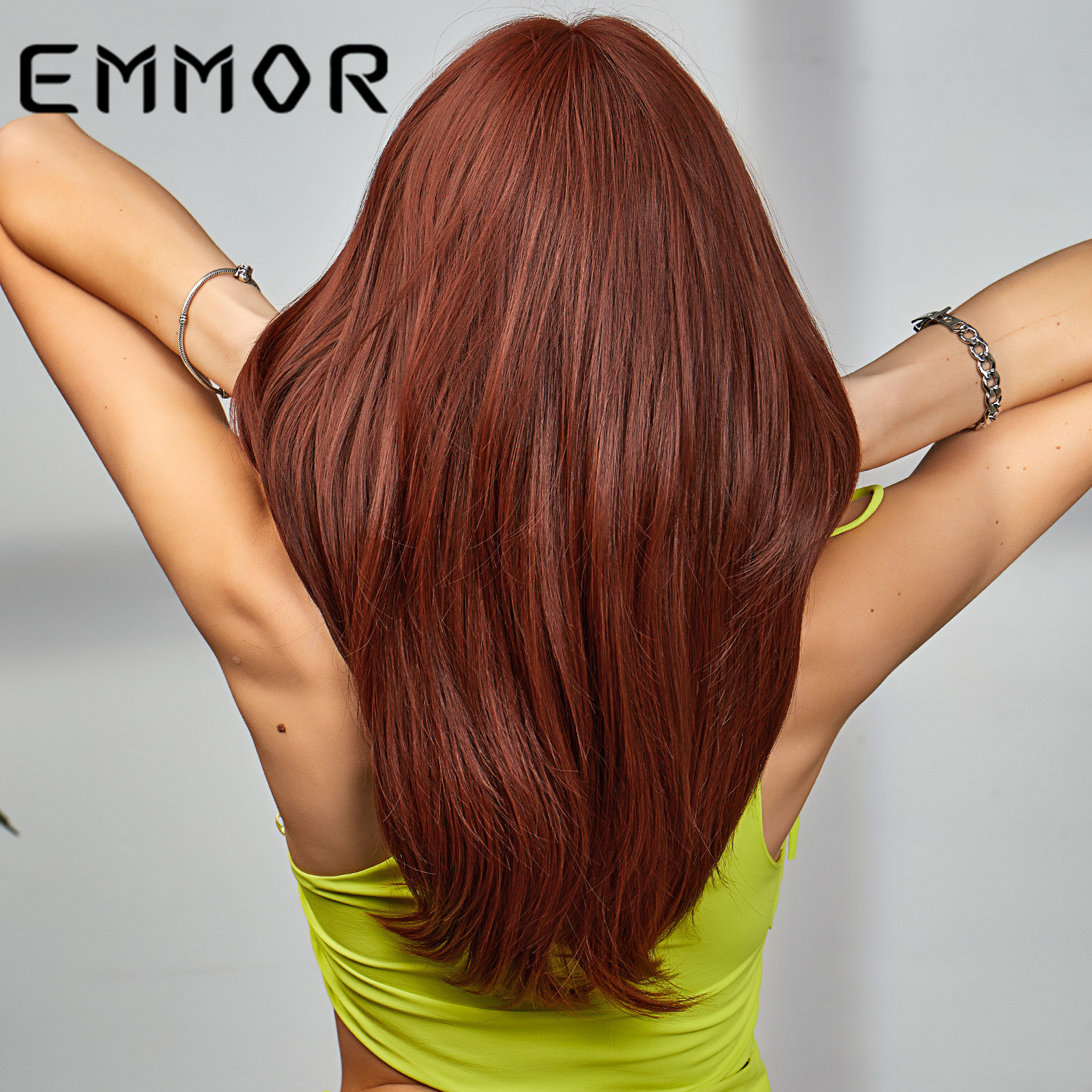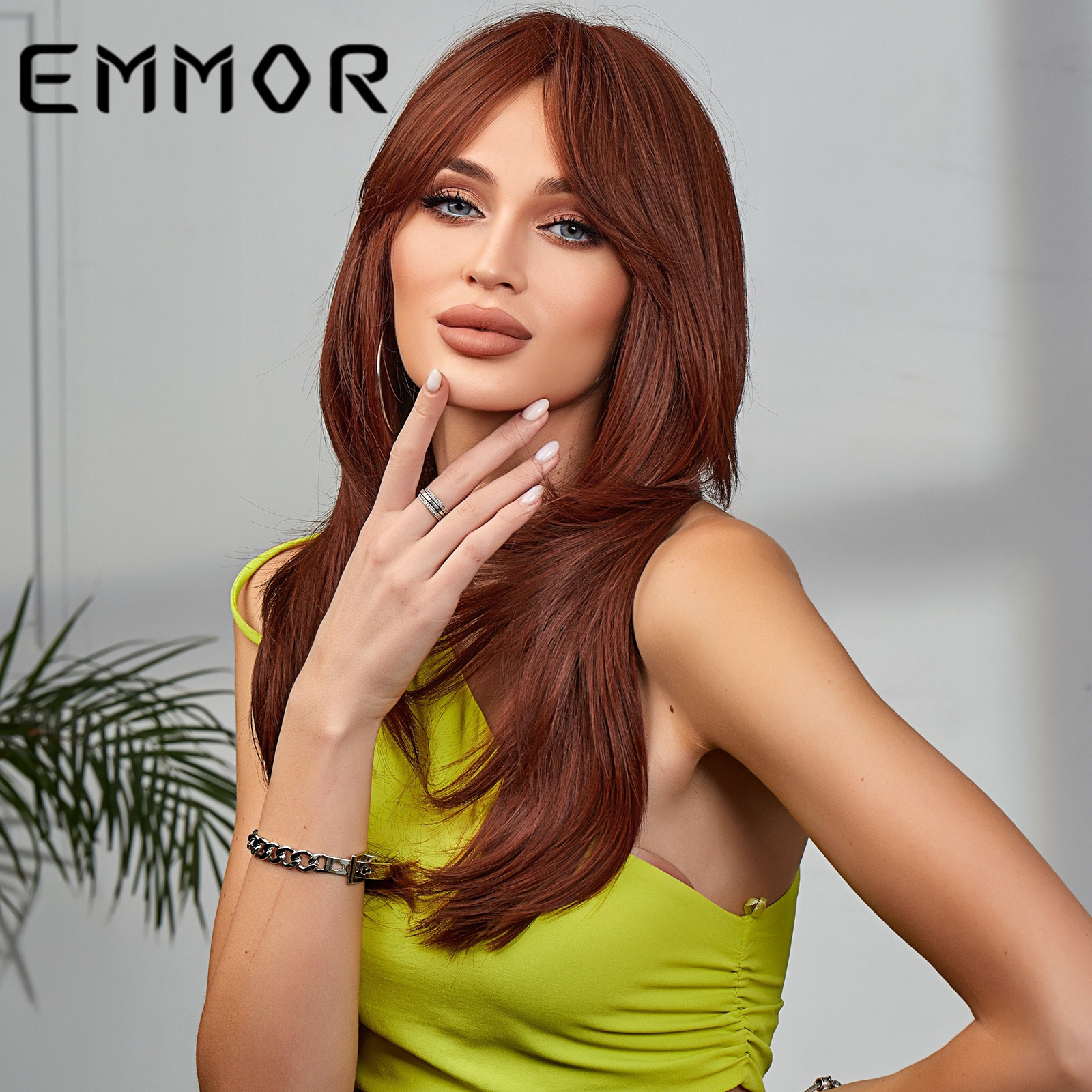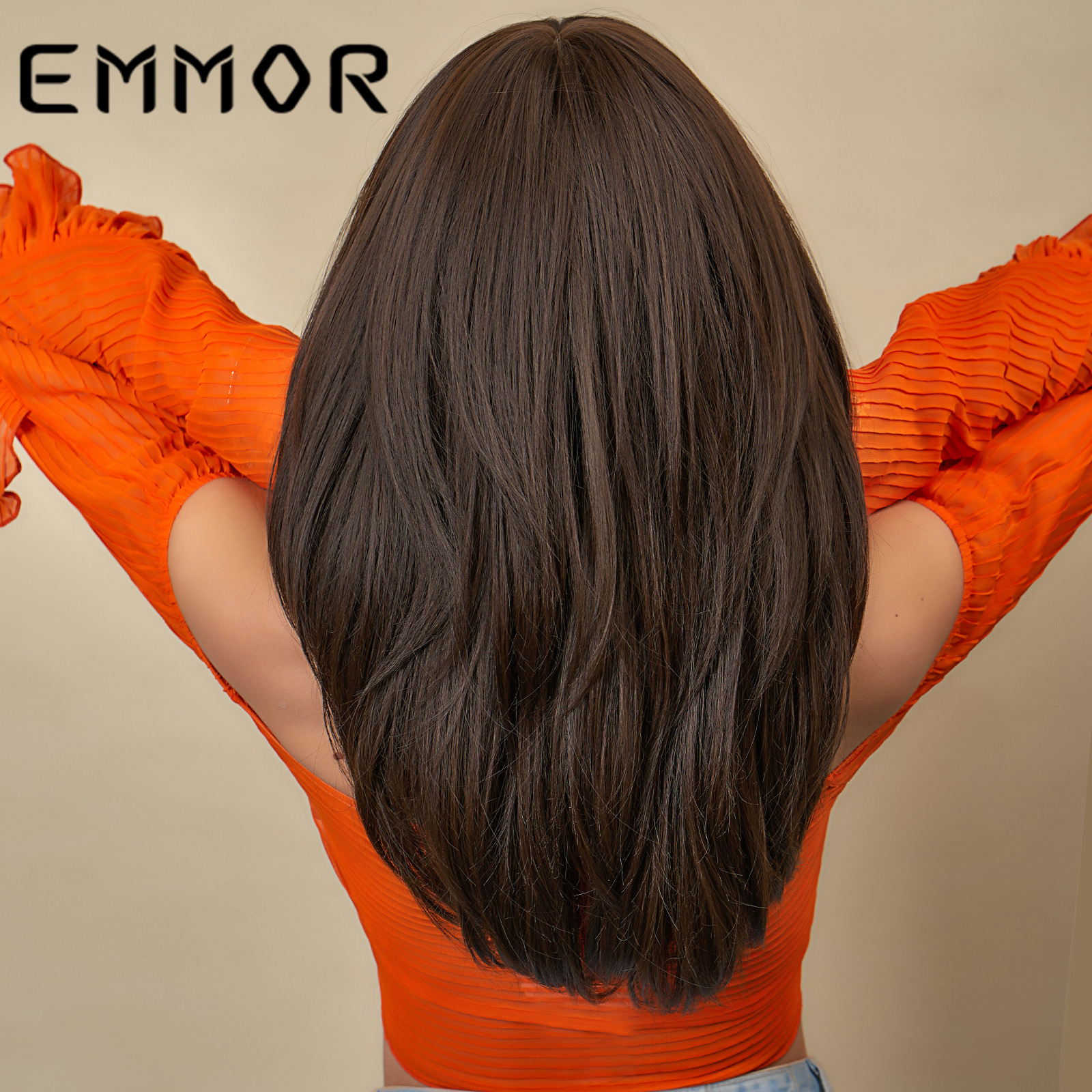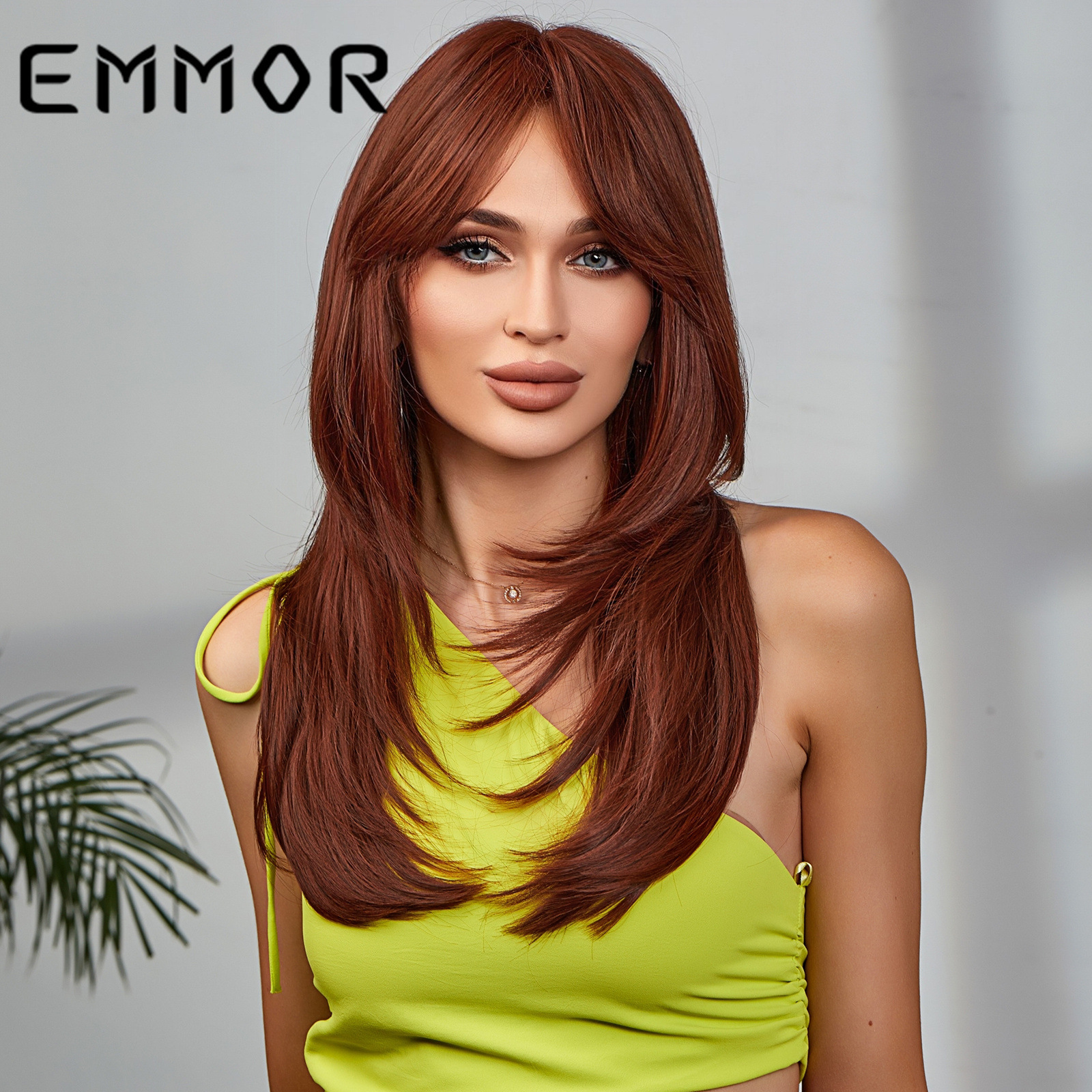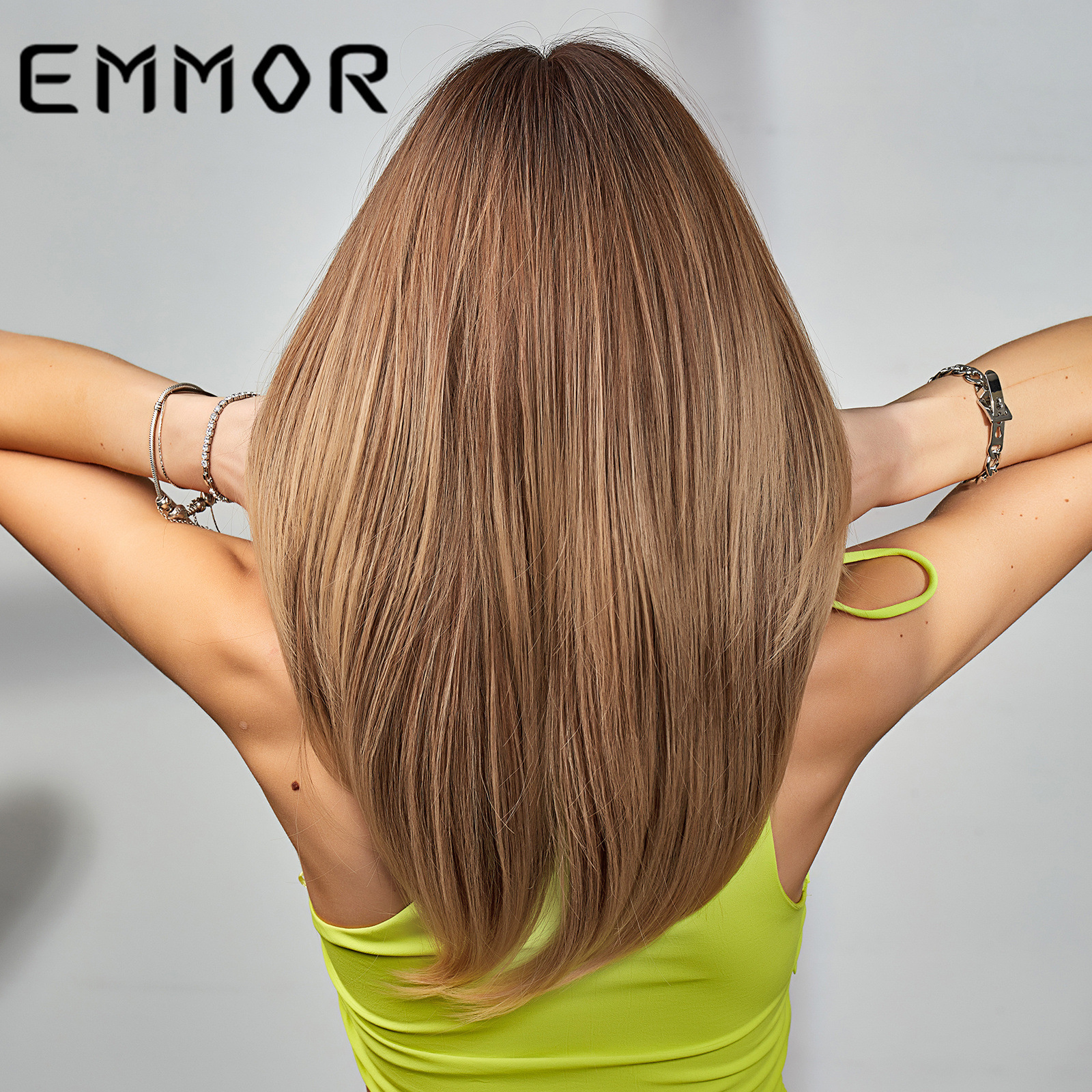 EMMOR Amazon nuevo gradiente de longitud media multicolor de ocho caracteres Bangs europeo y americano de fibra química de alta temperatura Peluca de seda cabeza completa