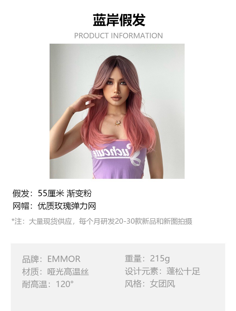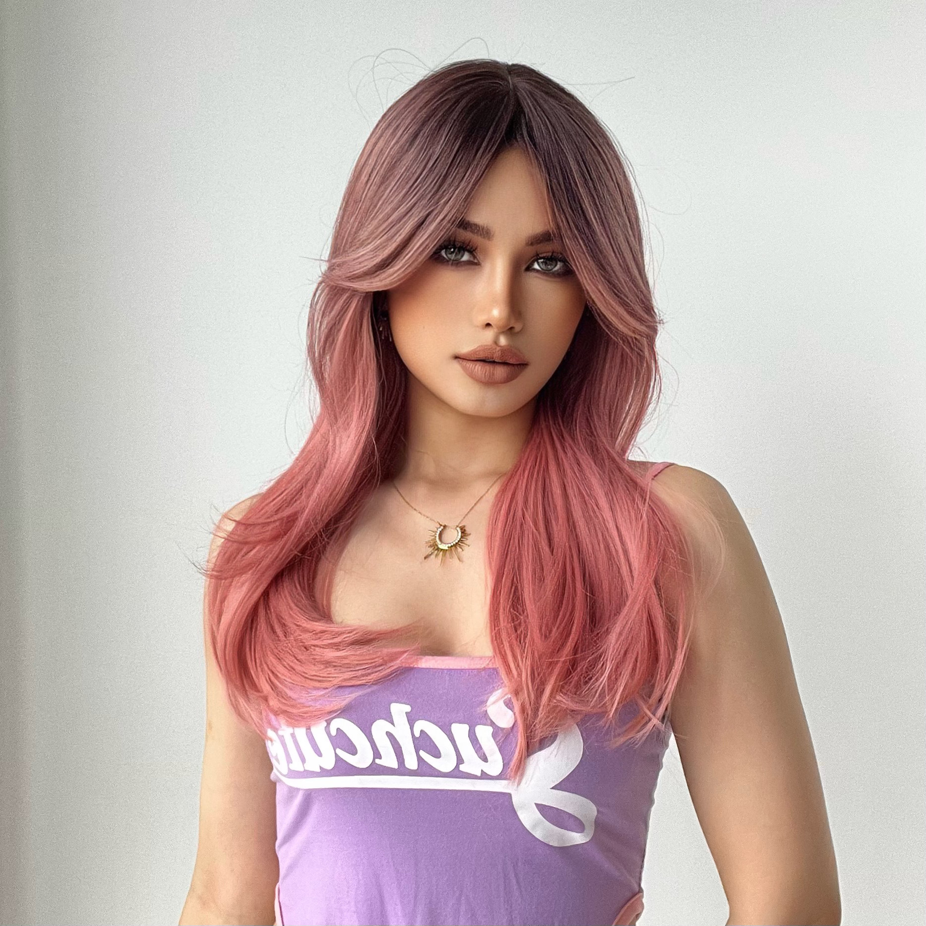 Amazon Comercio exterior estilo caliente ocho palabra flequillo gradiente Rosa Pelo Largo fábrica en stock Europa y los Estados Unidos