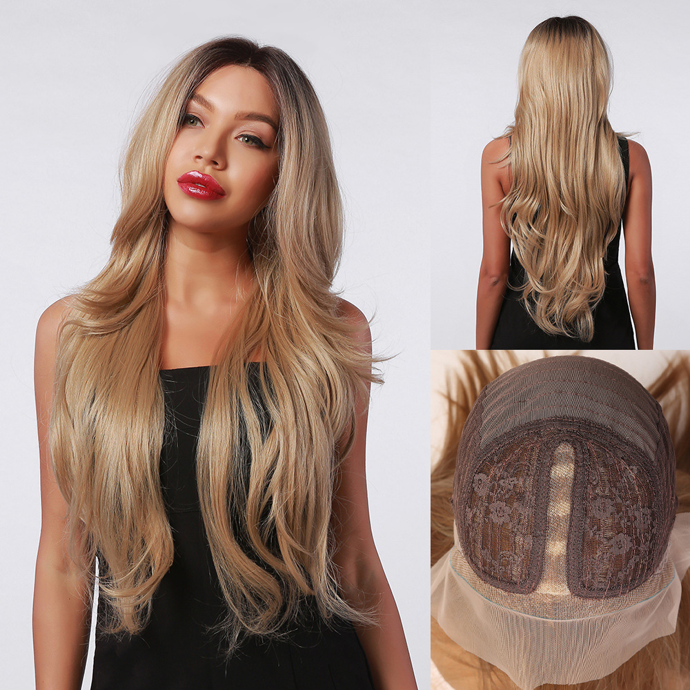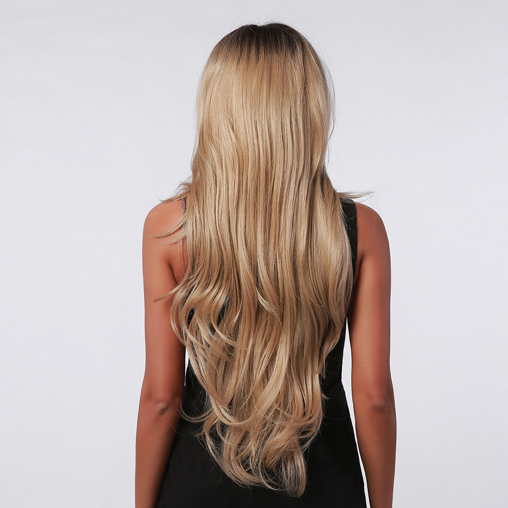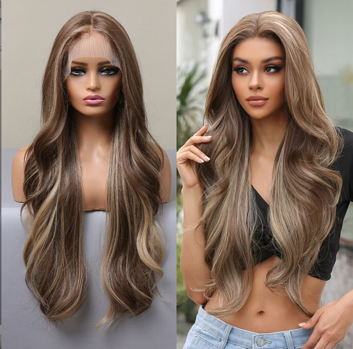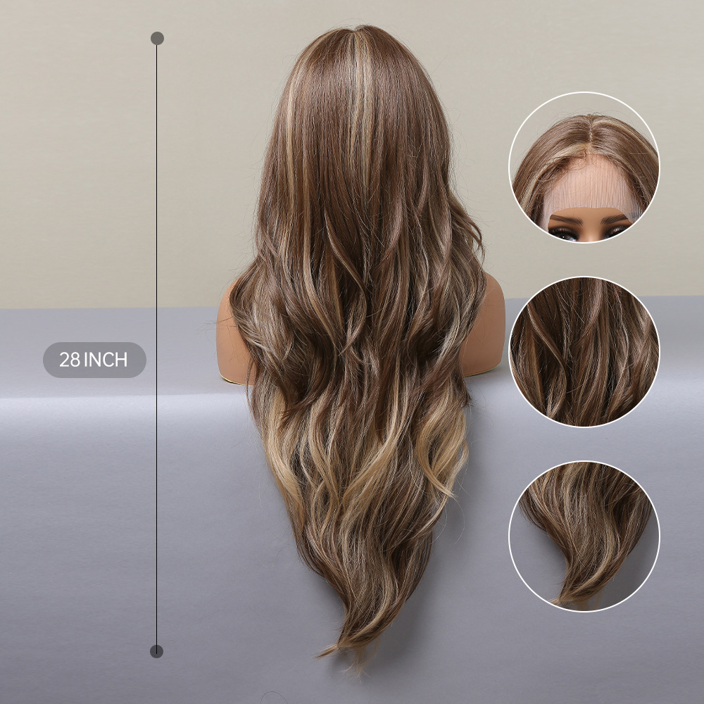 Nuevo 28 pulgadas de encaje largo pelo rizado medio color mezclado marrón largo rizado pelo diario Fibra de seda Peluca de pelo para mujeres