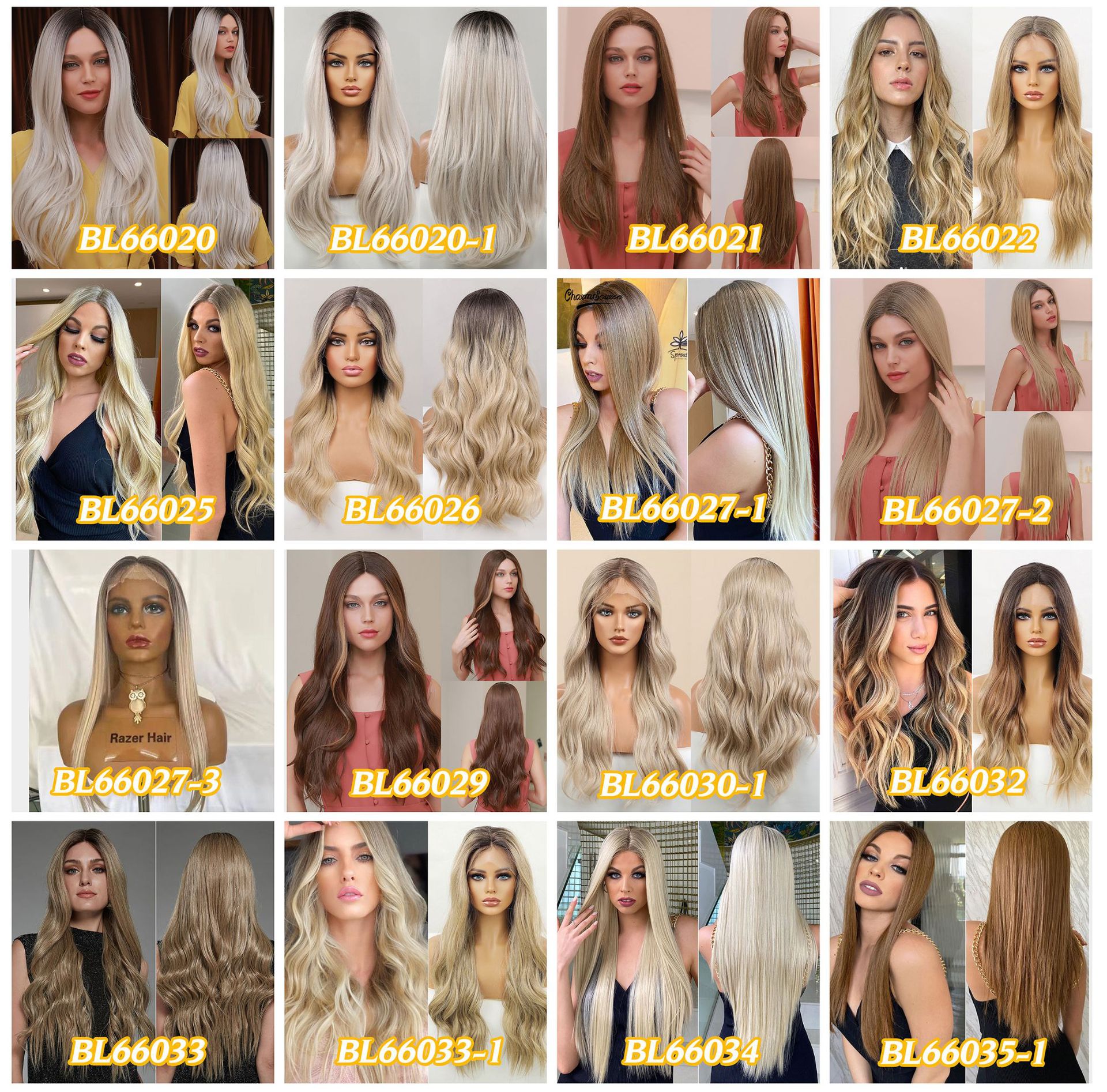 | Clasificación del color | Bl66018-1 marrón oscuro largo pelo rizado,Gradiente bl66018-2 Peluca dorada |