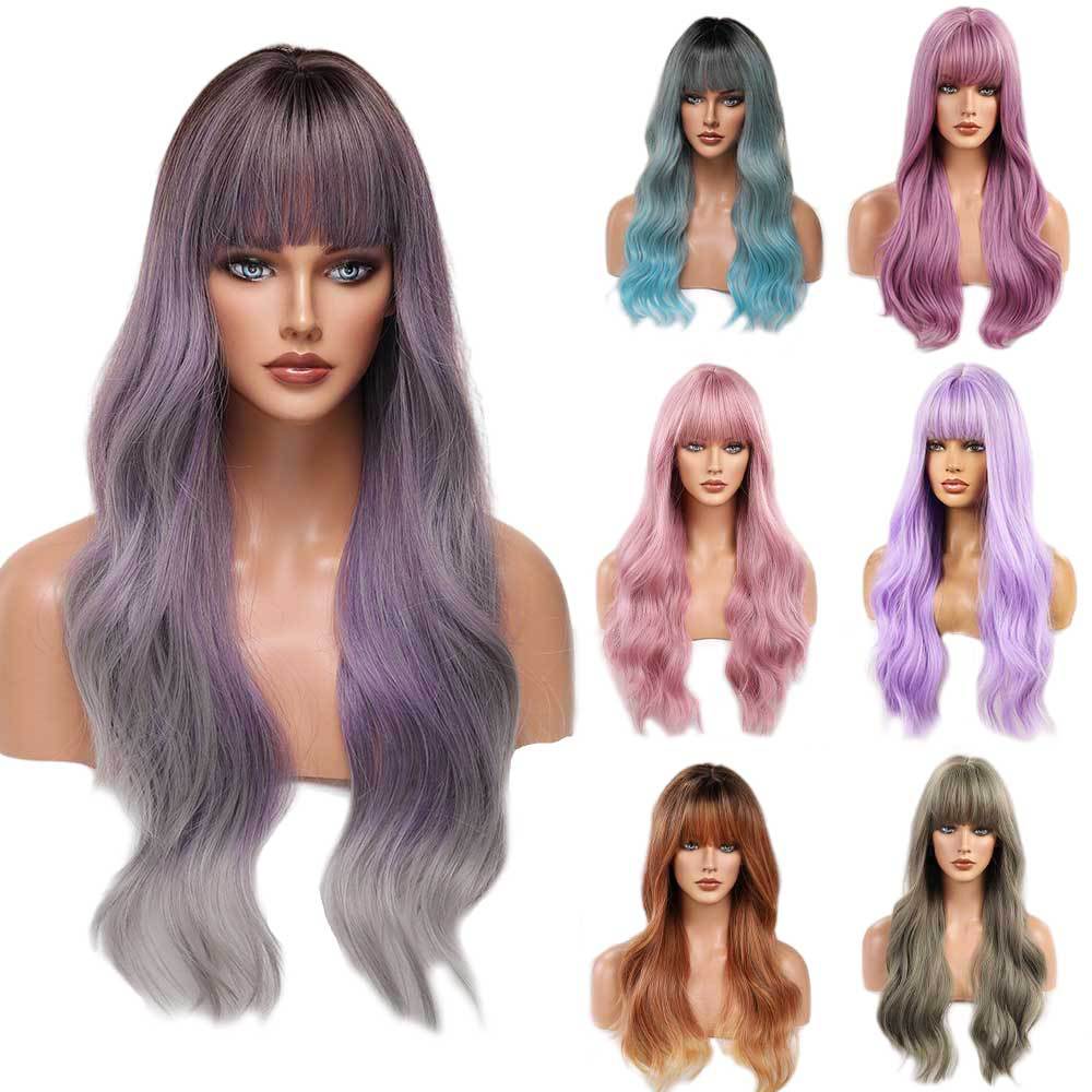 Conjunto de pelucas multicolores con flequillo de aire estilo anime para cosplay de Navidad y Halloween para mujer, seda de alta temperatura.