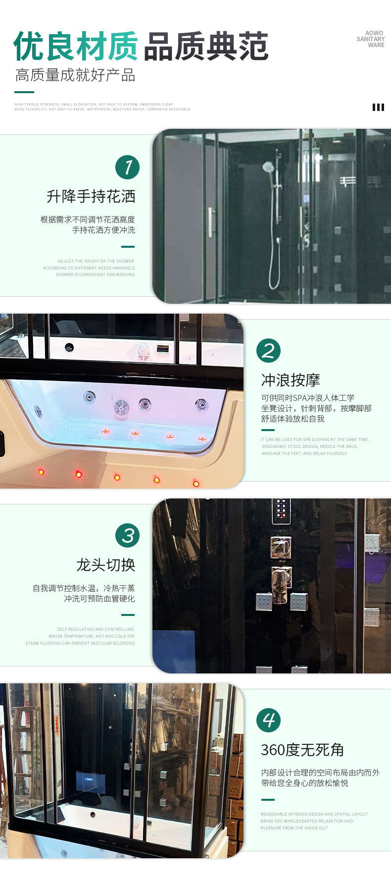 Acrílico ducha sala de vapor hogar Baño integrado vapor húmedo y seco partición Baño