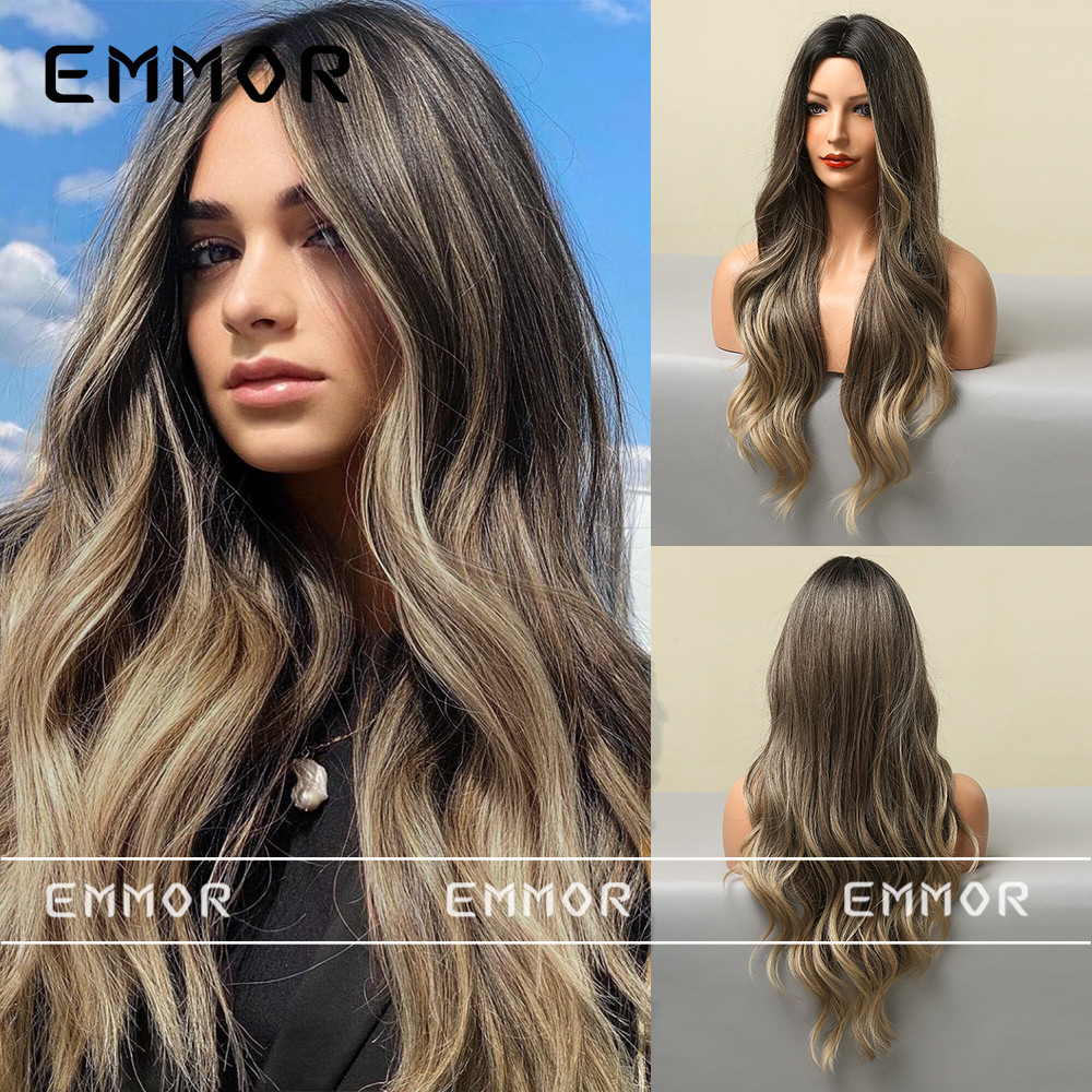 Amazon Comercio exterior caliente peluca europea y americana femenina gradiente medio marrón oscuro onda grande Pelo Rizado de alta temperatura de seda sombrerería