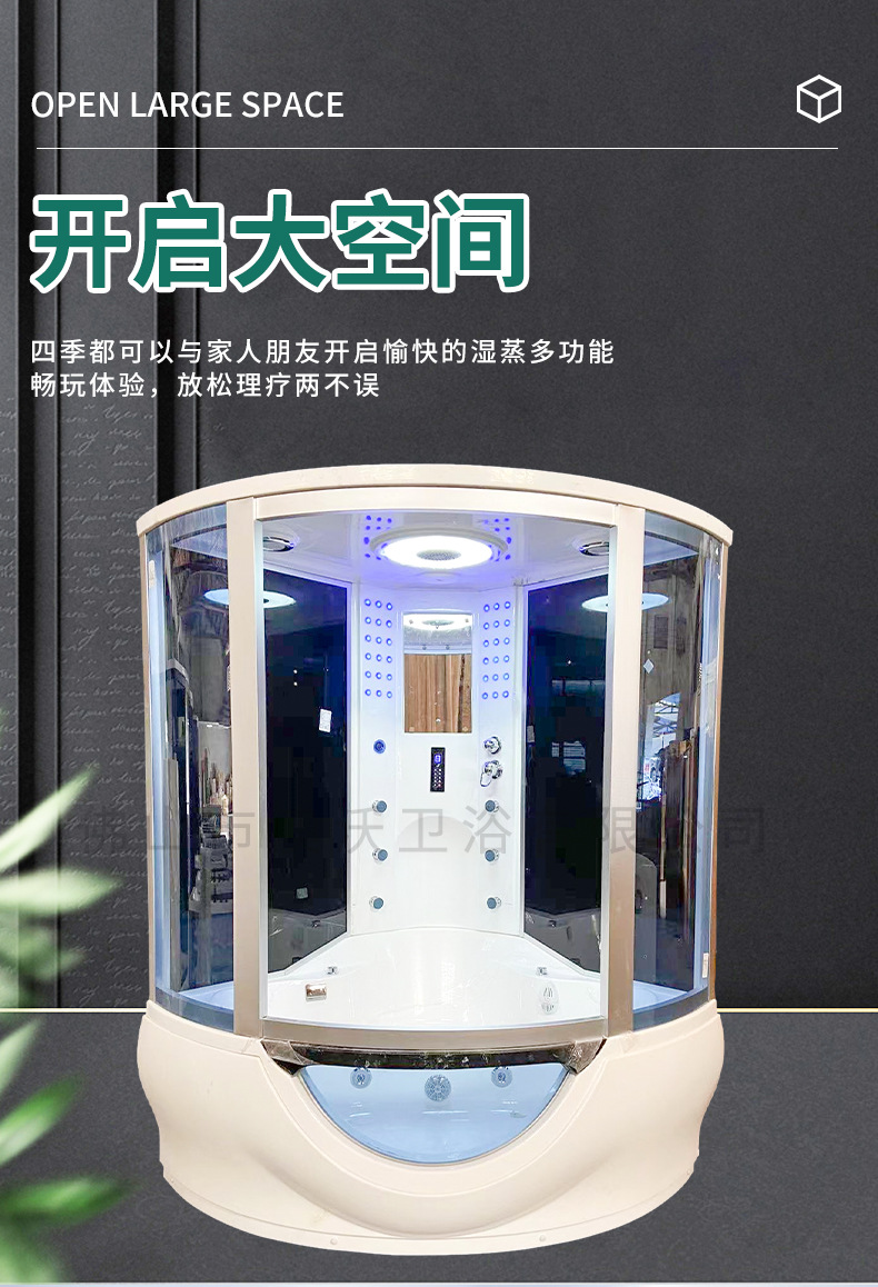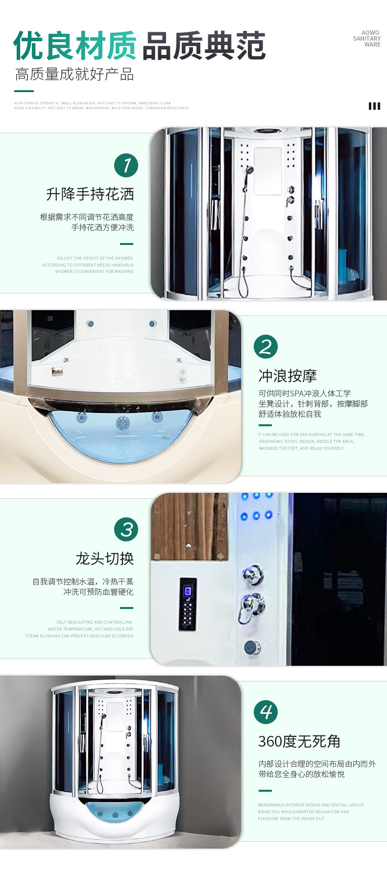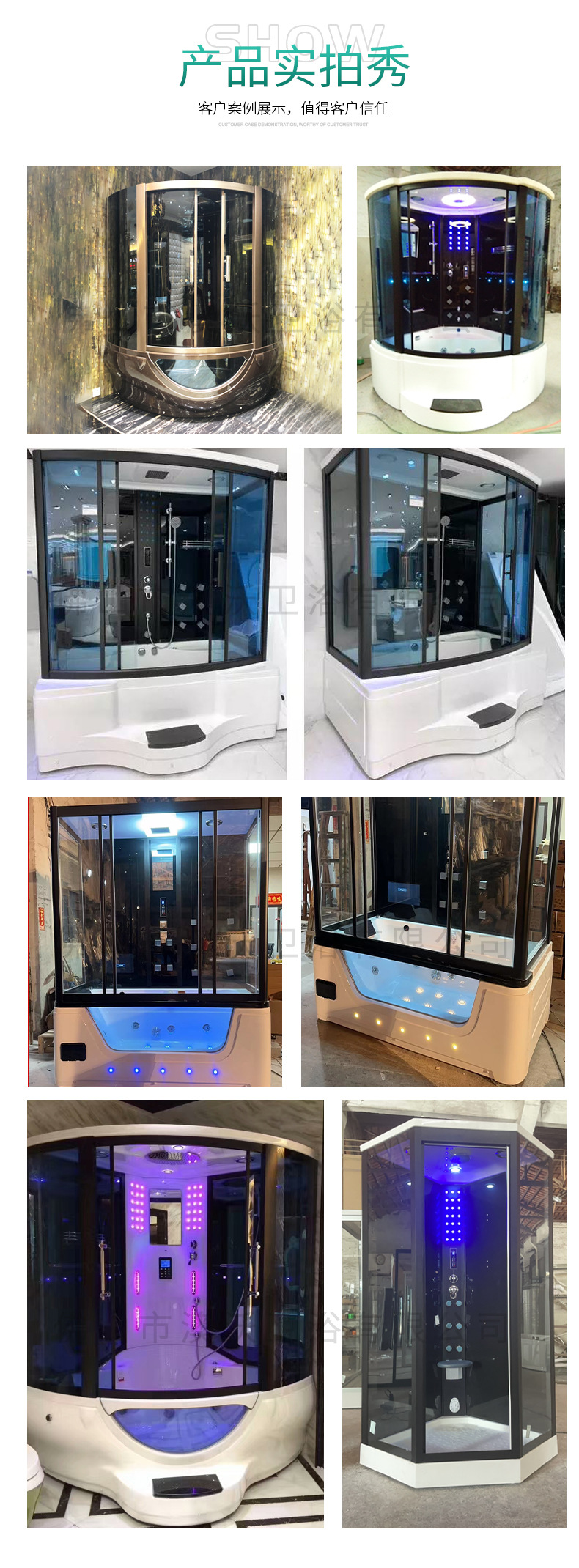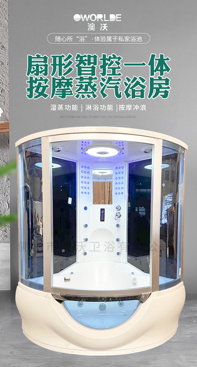 Sala de ducha en forma de abanico con bañera, sala de vapor con pedal, sala de ducha integral, sala de sauna con ducha de vapor integrada