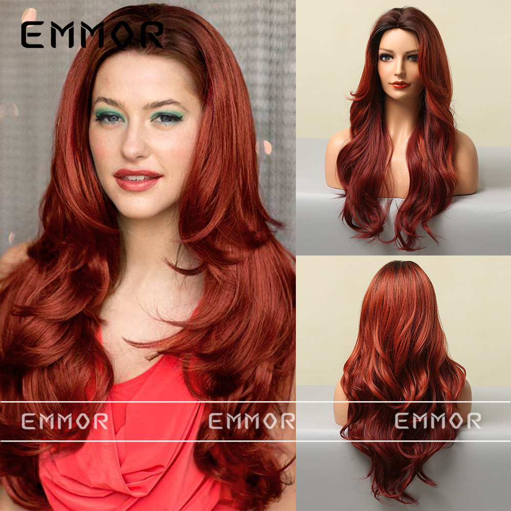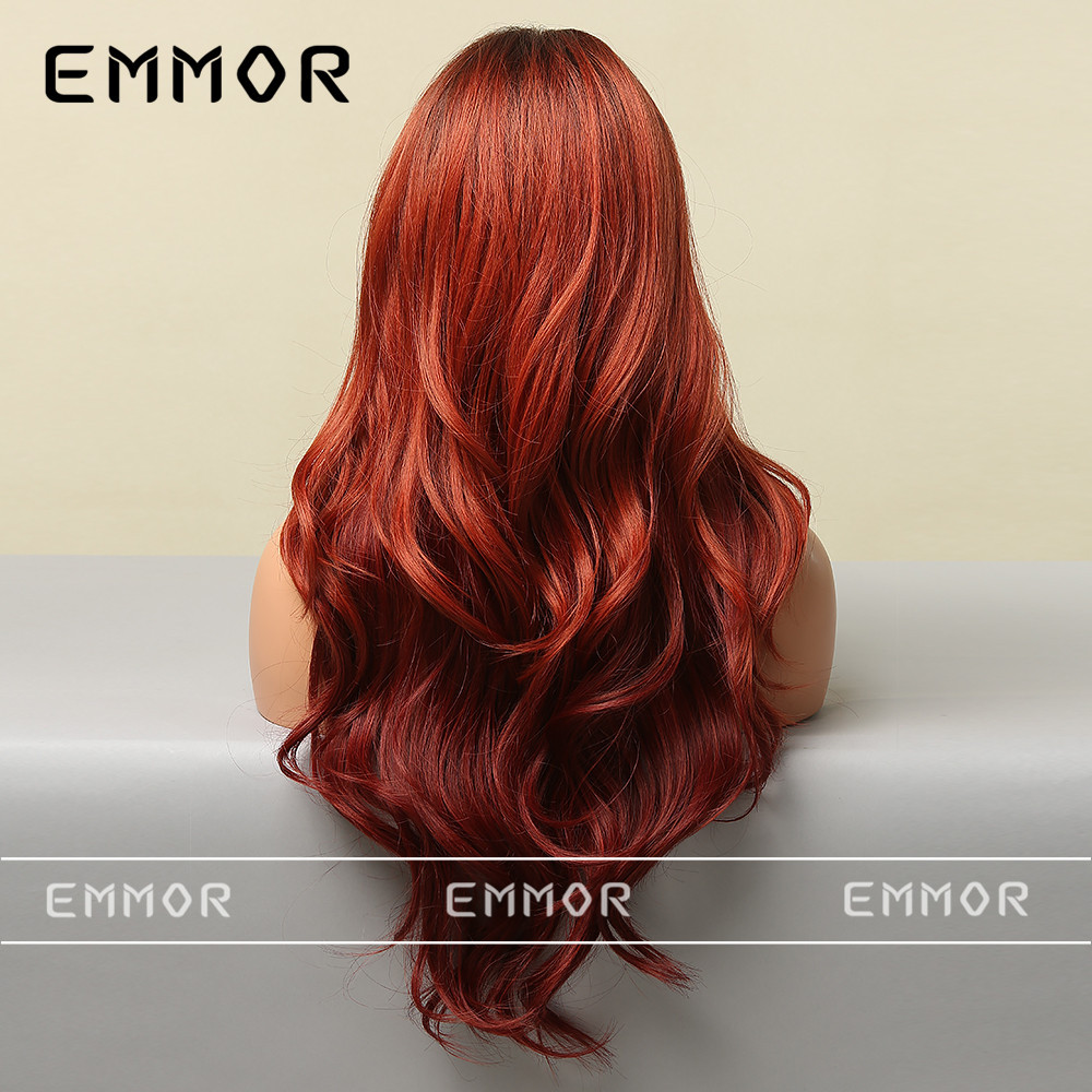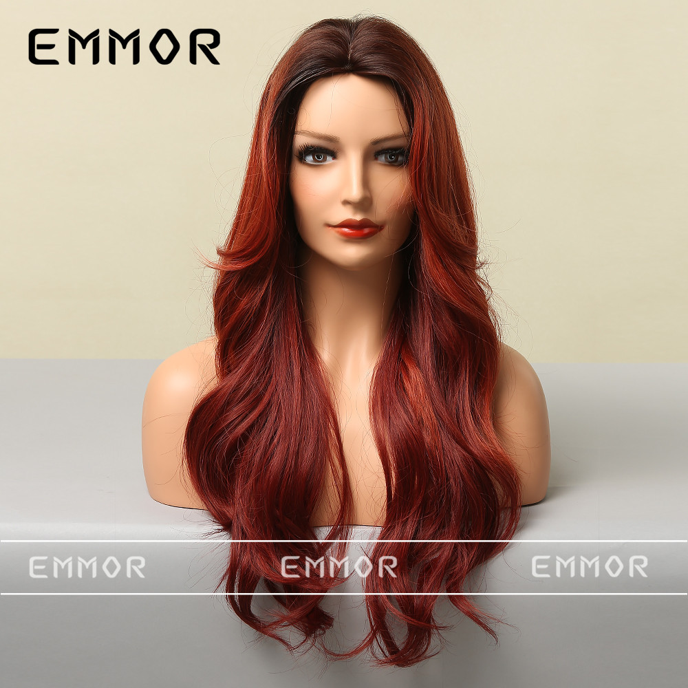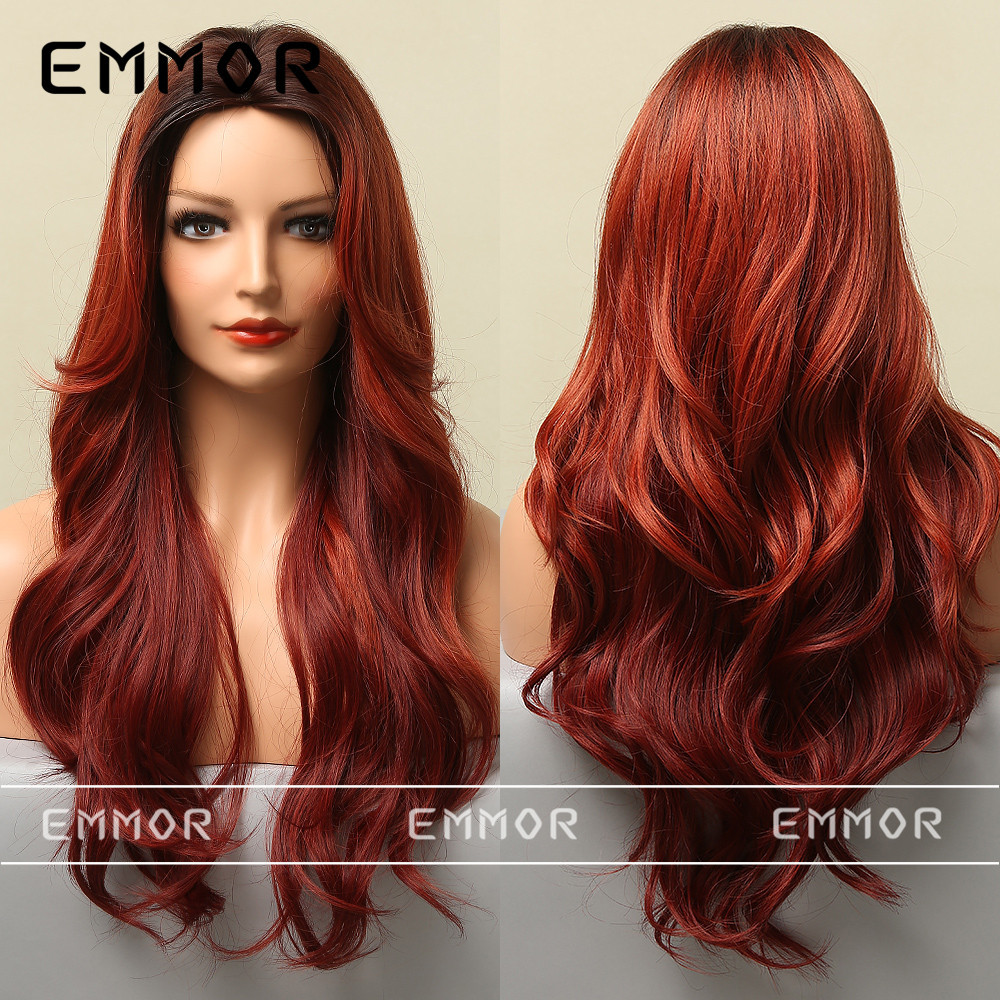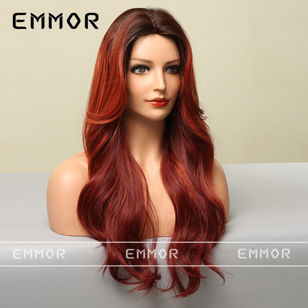 En stock entrega de una sola pieza medio gradiente rojo gran ola europea y americana larga peluca rizada Cosplay pelucas tocados