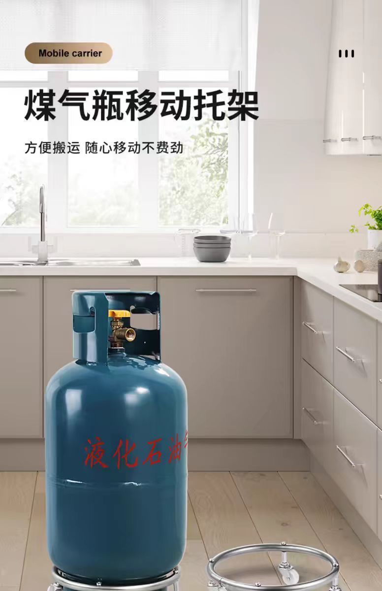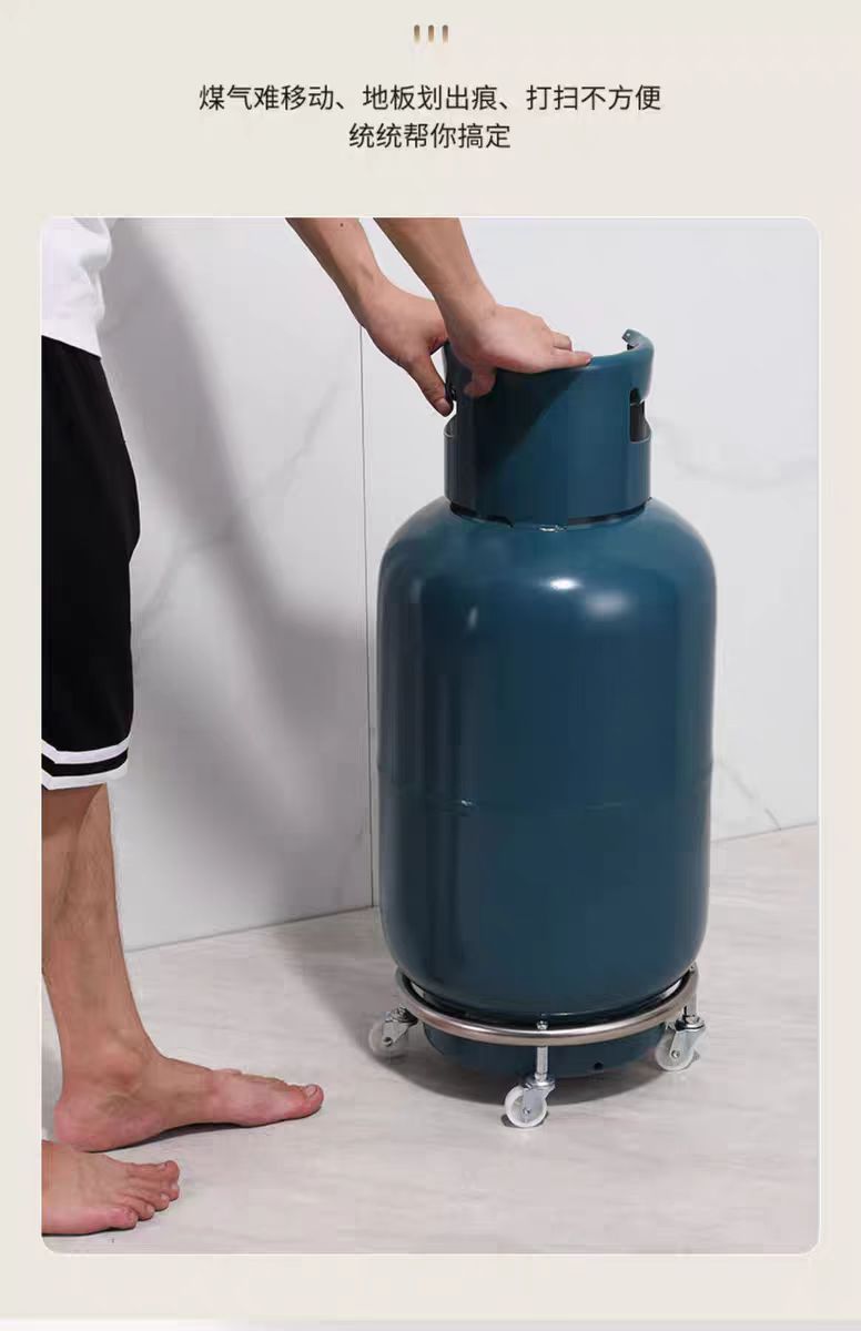 Base de tanque de gas doméstico de gas de freno portador móvil de rueda universal gas licuado de cocina estante de almacenamiento bandeja de soporte