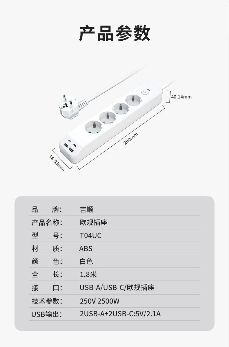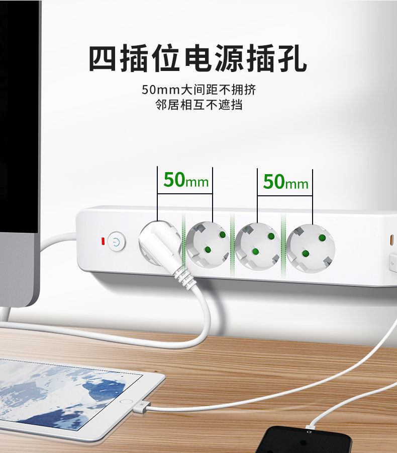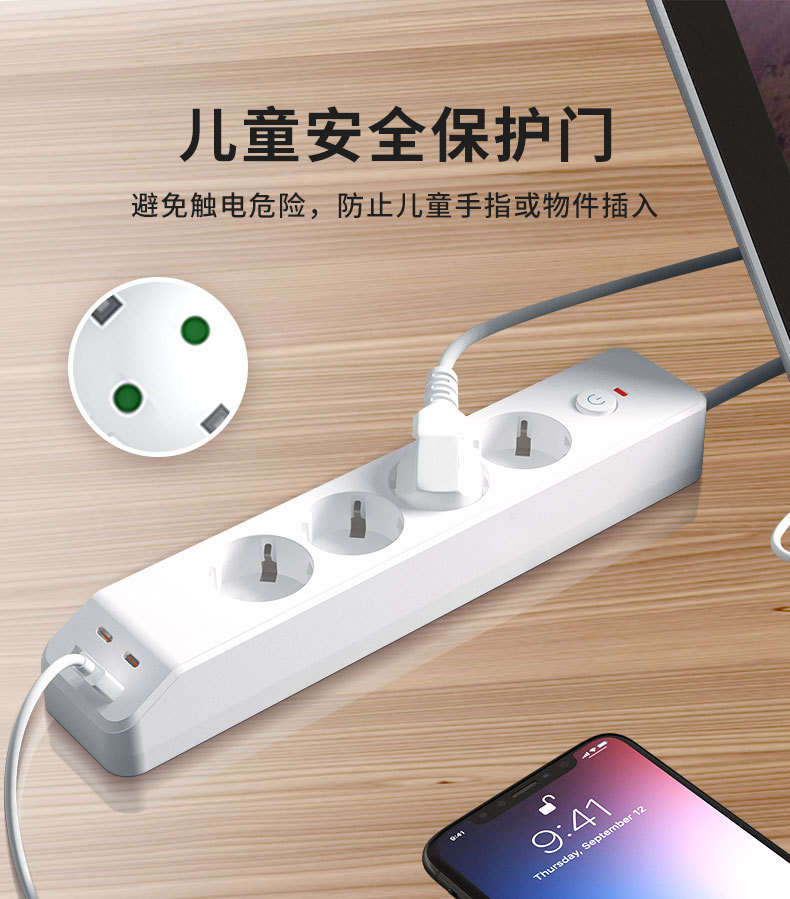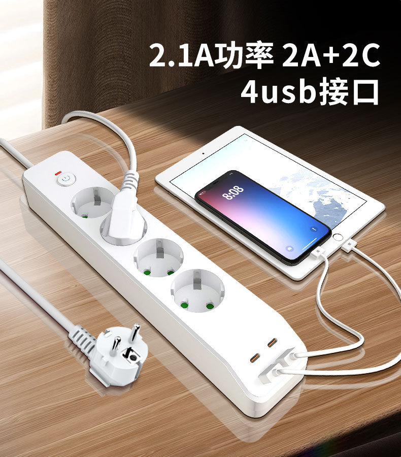 Mayorista enchufe de alimentación de cuatro posiciones con enchufe de carga PD / USB enchufe de protección contra sobrecarga placa de conexión ignífugo