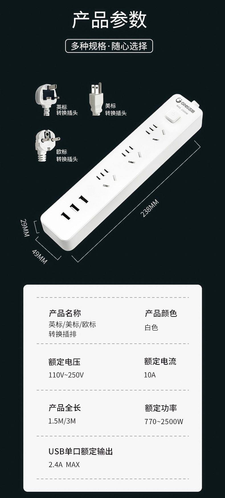 Convertidor de enchufe estándar de EE.UU. Canadá convertidor de enchufe estándar de EE.UU. Japón filipino placa de enchufe estándar nacional