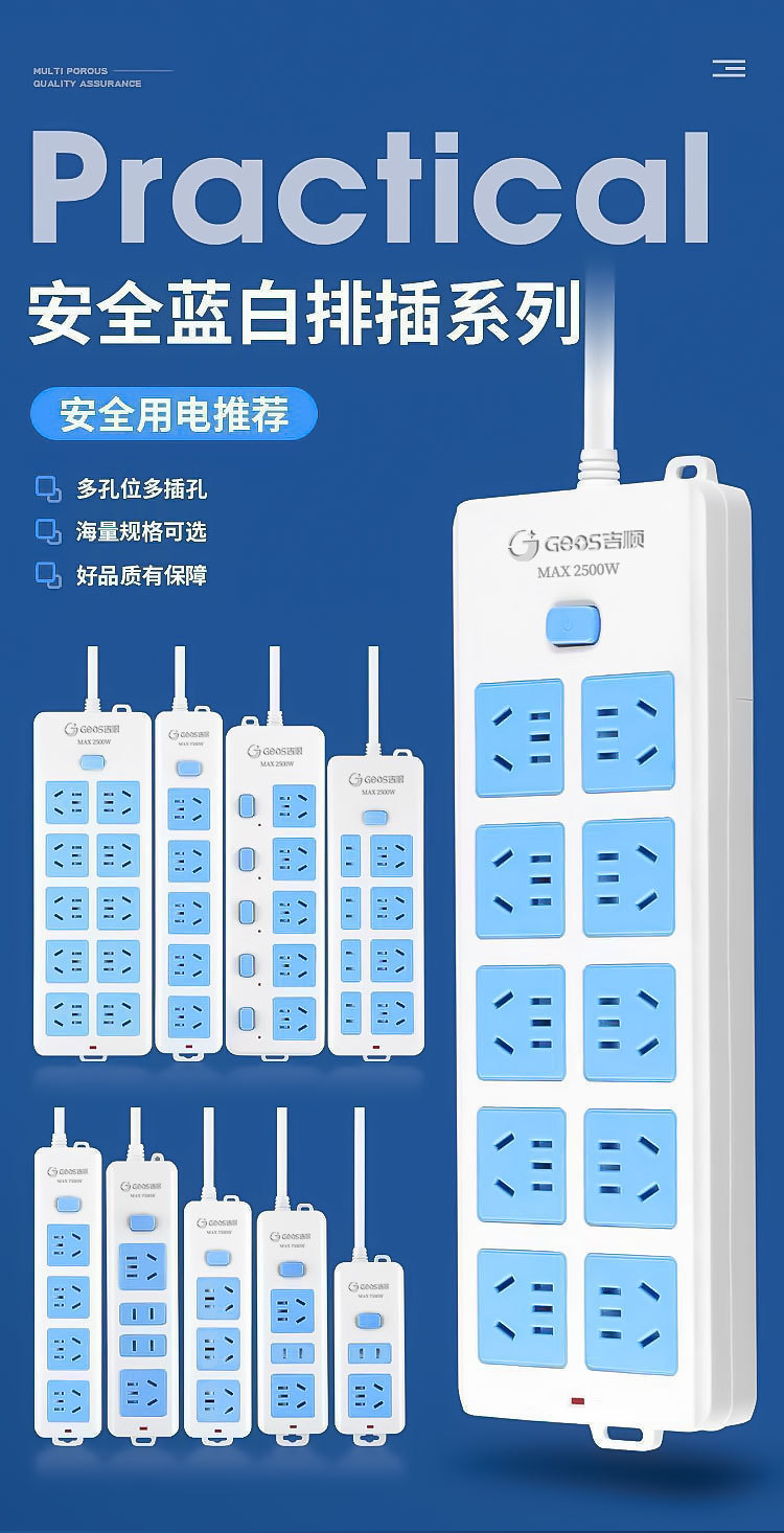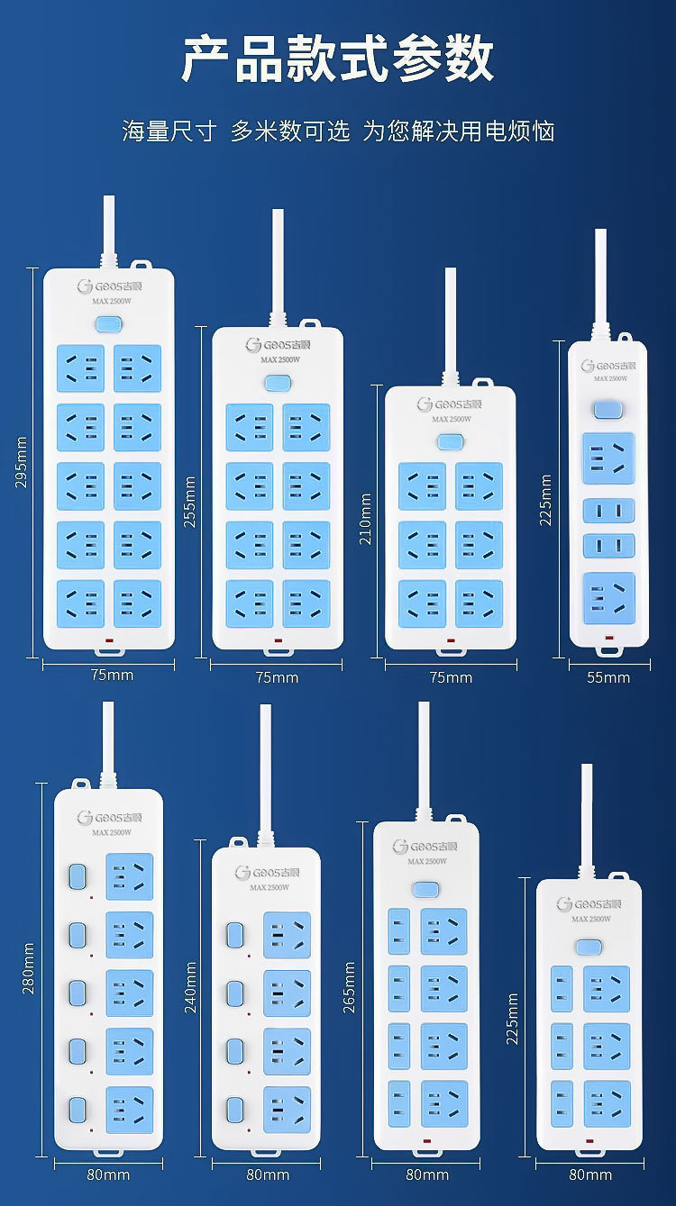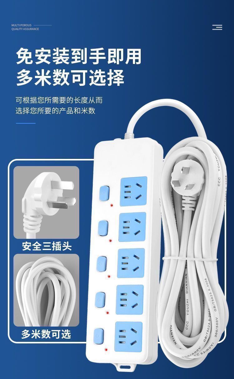 Jishun enchufe de seguridad de cobre certificado 3C enchufe doméstico de oficina dormitorio enchufe de fila duradero nuevo enchufe estándar nacional al por mayor