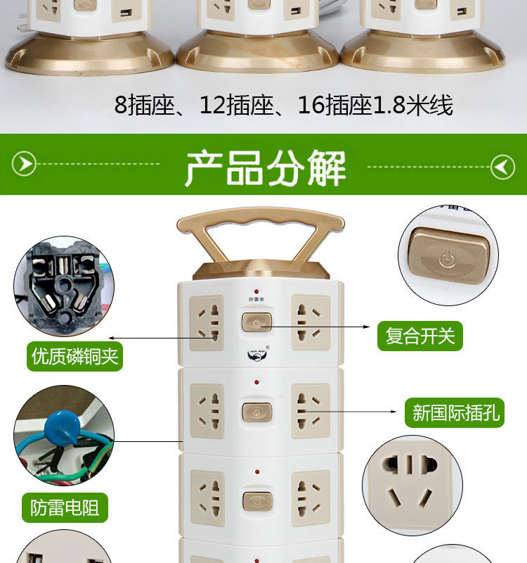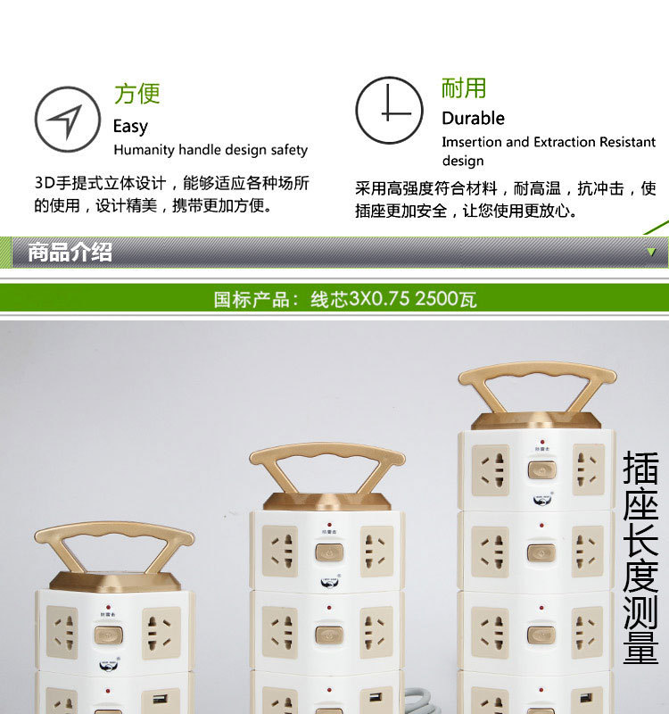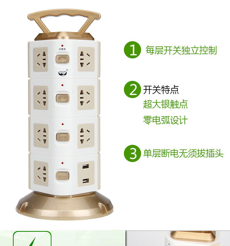 Producción y ventas de oficina de oro, Taihao Jin vertical portátil, carga USB, comercio exterior, exportación, nuevo enchufe de fila