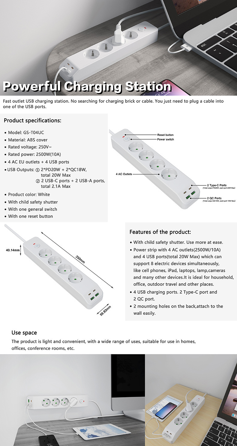Euro enchufe transfronterizo USB multi-socket PD placa de enchufe de carga rápida para Alemania Francia Holanda Dinamarca