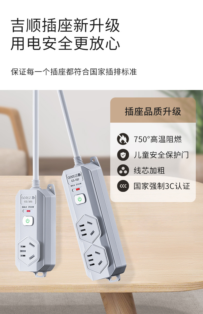 Jishun socket multi-inchufe placa de enchufe anti-sobrecarga protección de oficina doméstica línea larga sobrecarga enchufe de apagado inteligente