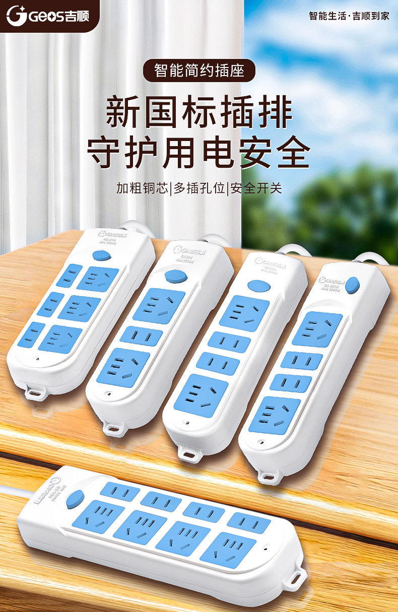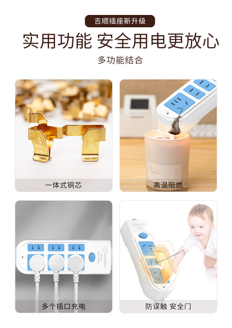 Jishun zócalo de oficinas de cobre puro placa de enchufe doméstica multi-inchufe con línea nueva placa de enchufe estándar nacional al por mayor