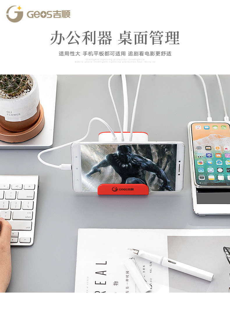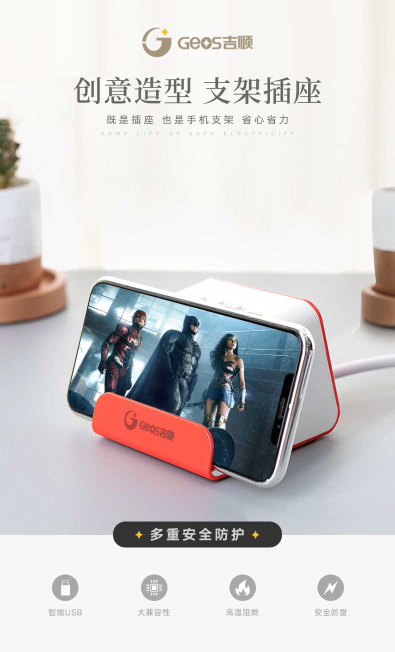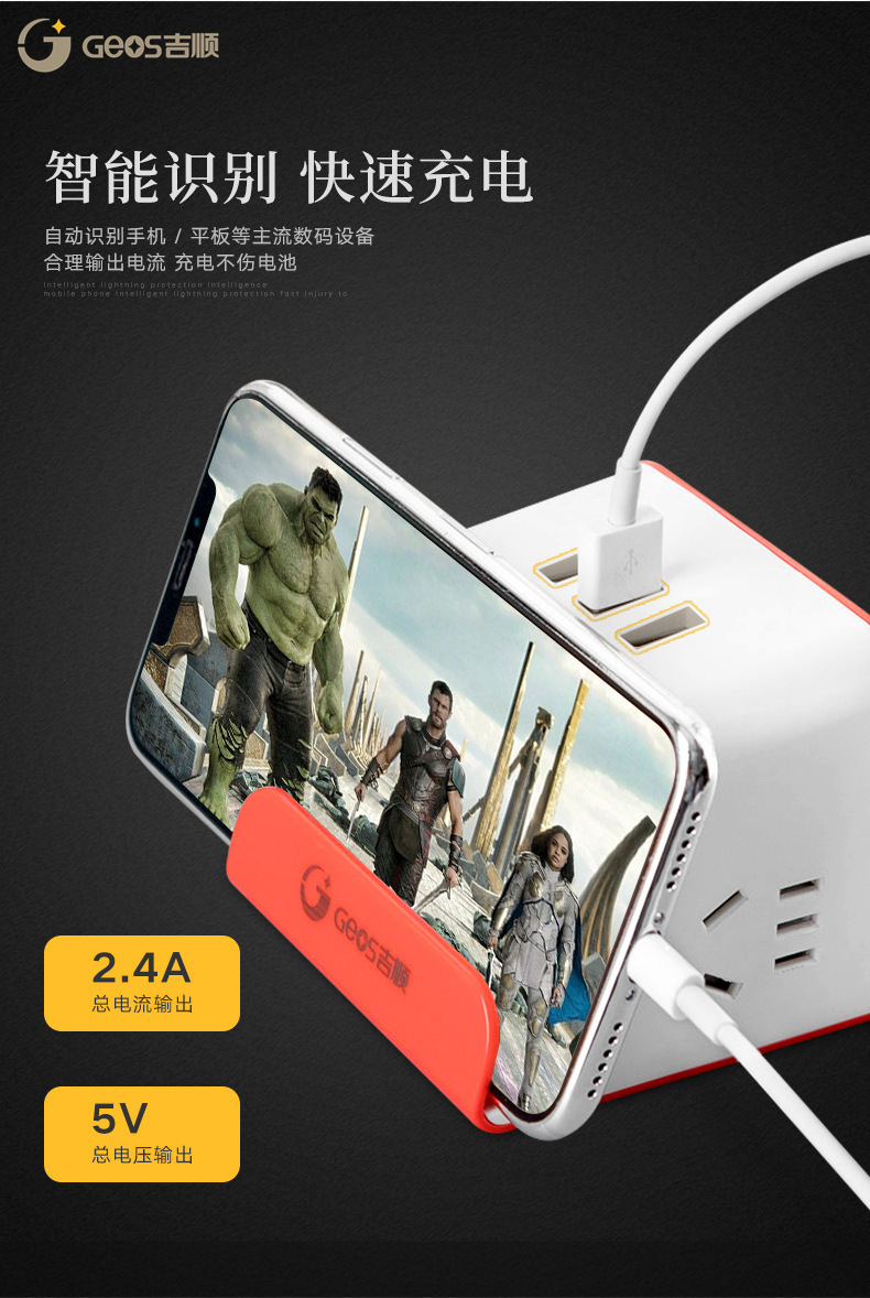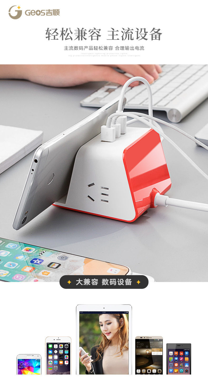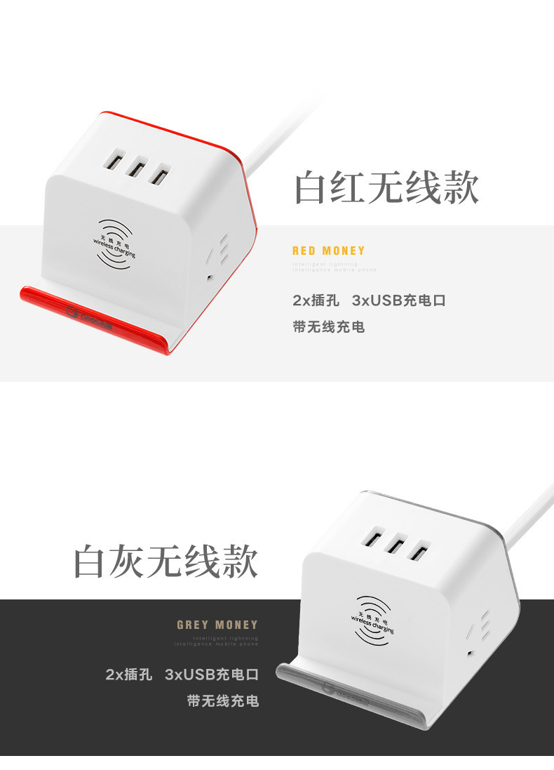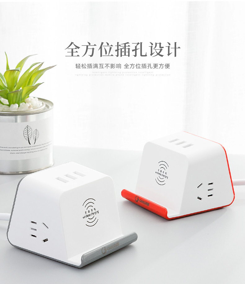 Jishun enchufe inteligente creativo para oficina doméstica con placa de alimentación USB enchufe multifuncional enchufe de carga inalámbrica