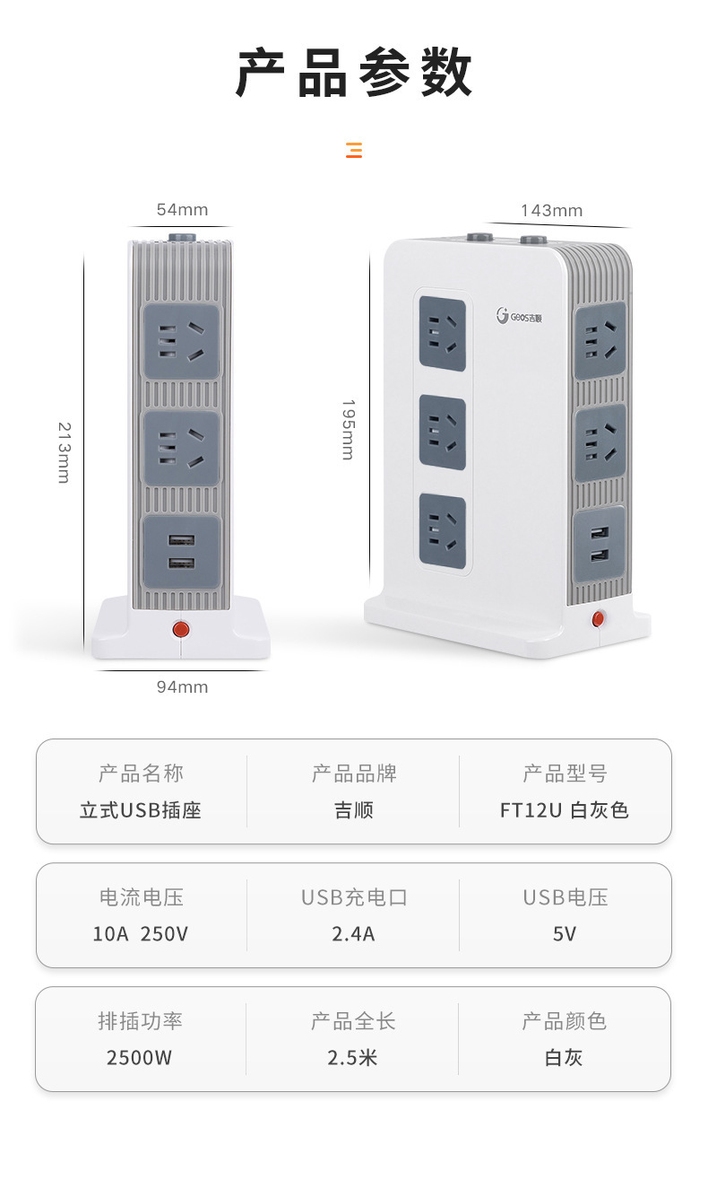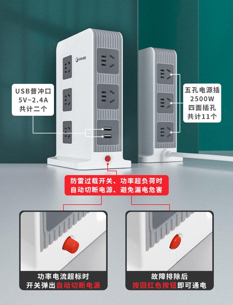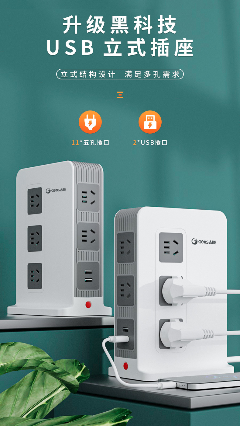 Jishun enchufe doméstico regalos enchufe vertical USB tablero de conexión tridimensional de escritorio creativo multipuerto tablero de conexión
