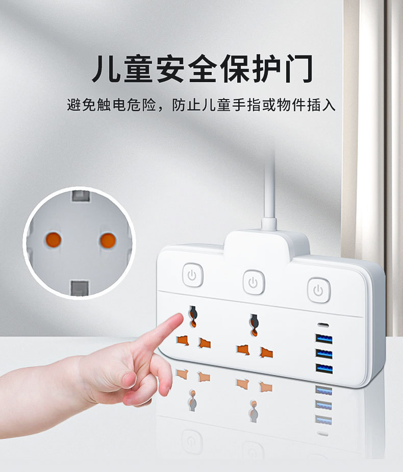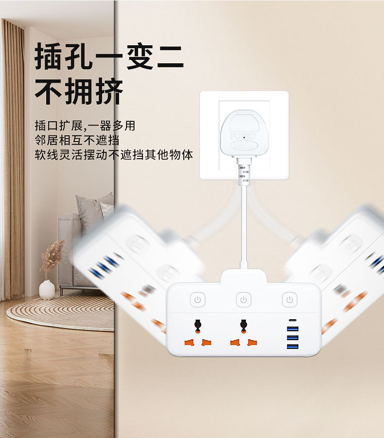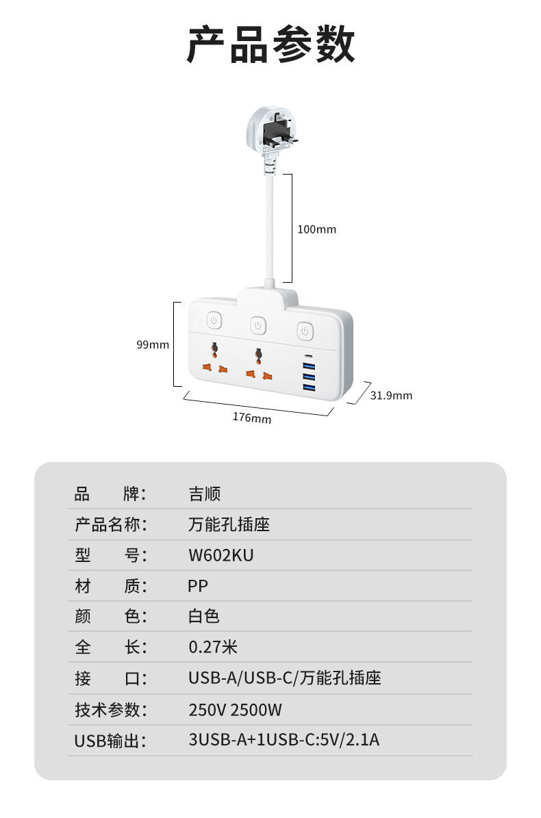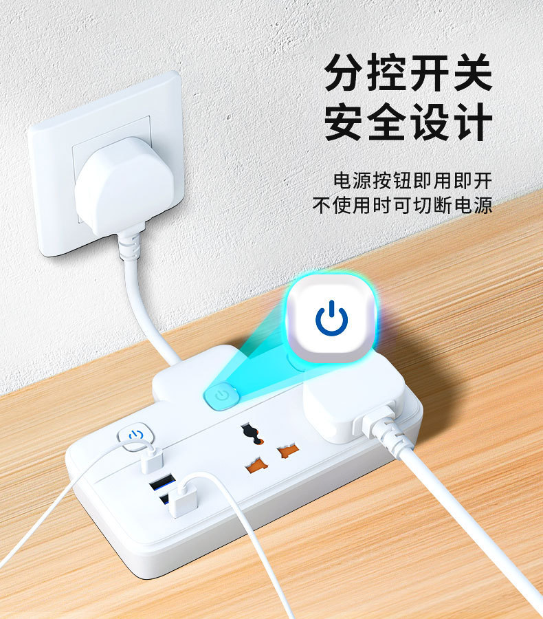 Jishun uno a dos enchufe de conversión con enchufe PD / USB, enchufe británico a enchufe universal, control dividido de dos conectores de conexión