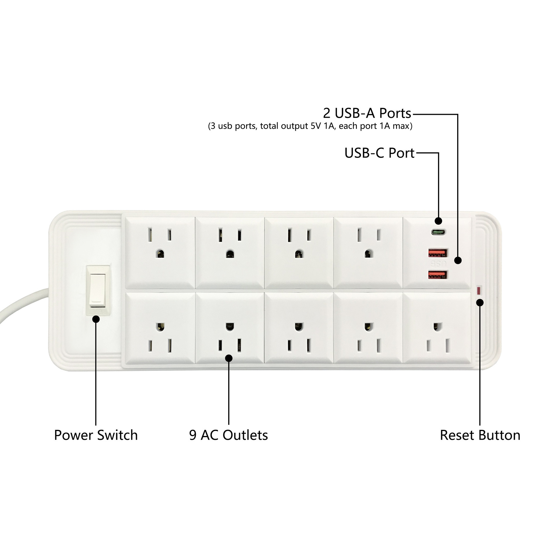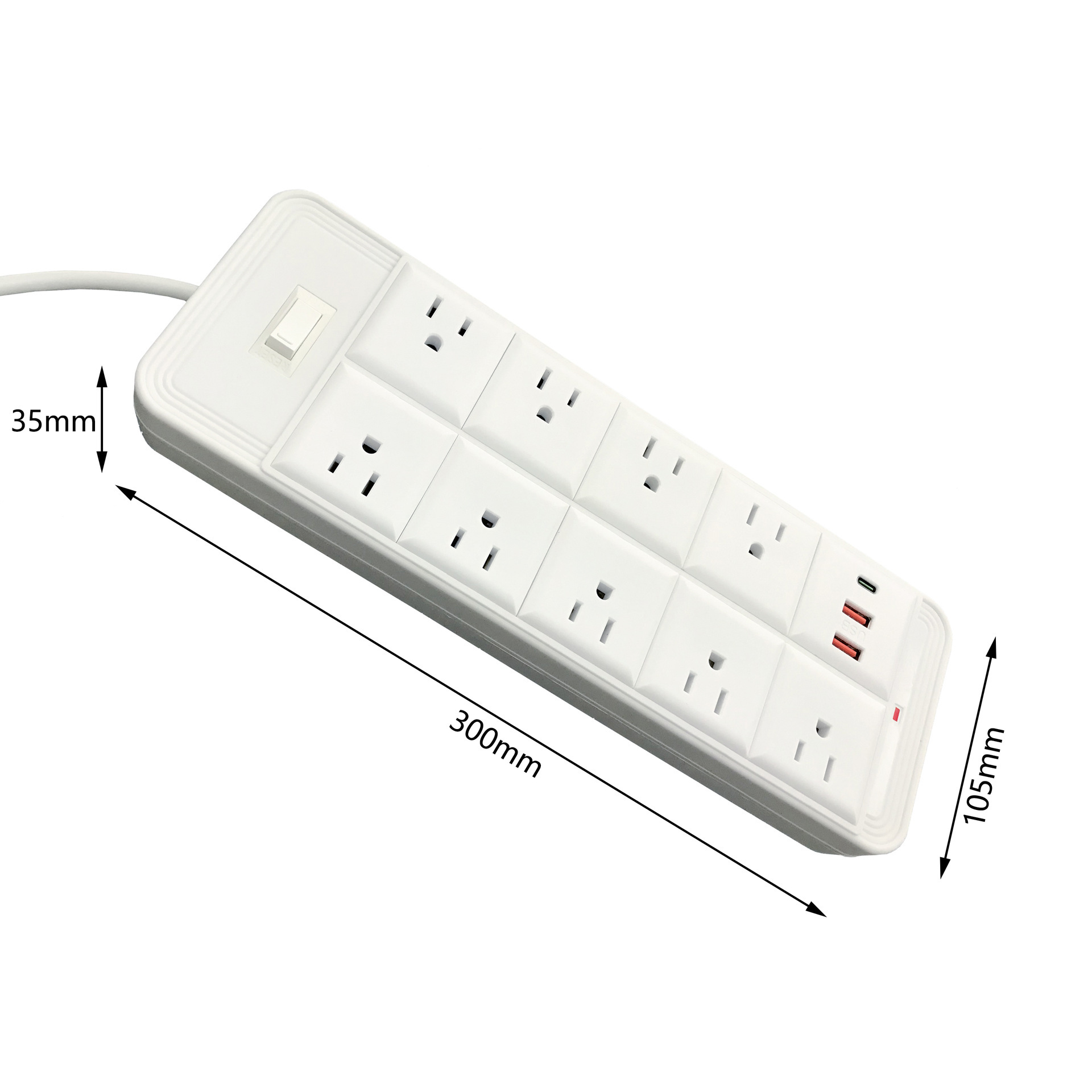 Jishun enchufe de alimentación de 10 dígitos con enchufe PD / USB, tablero de conexión transfronteriza anti-sobrecarga anti-inflama de Amazon