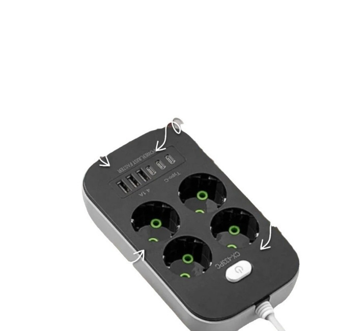 Filtro de red 4 enchufes 3 tipo-C y 3 USB con interruptores de venta caliente en Rusia