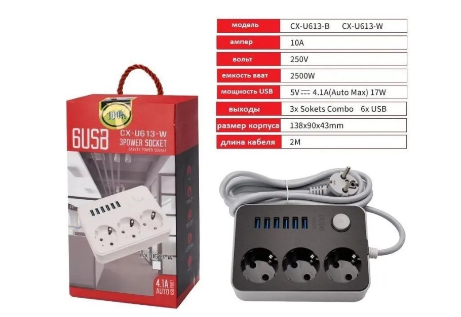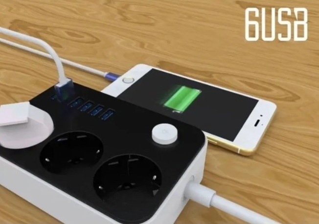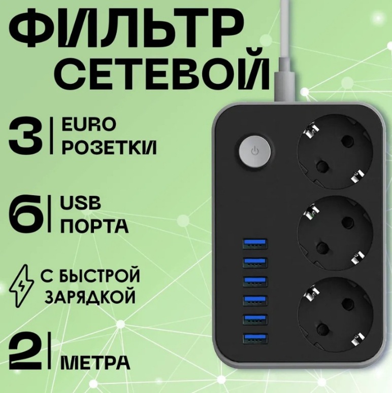 Cable de extensión de alimentación de 2m con conector USB estándar europeo enchufe de línea ruso comercio exterior transfronterizo placa de conexión europea