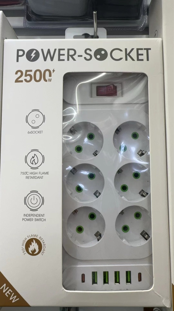 Comercio exterior enchufe estándar europeo con interruptor enchufe estándar europeo enchufe doméstico con enchufe USB 6 agujeros placa de cable de tracción exclusiva transfronteriza