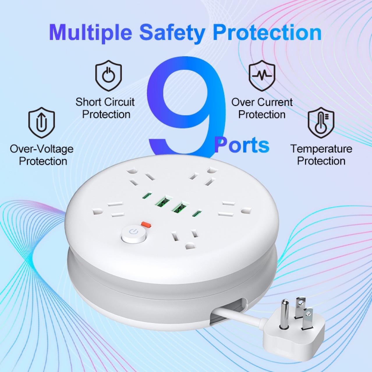 Transfronterizos para enchufes de almacenamiento estándar estadounidenses, enchufes de fila de discos de bobinado estadounidenses con placa de enchufe de protección contra sobretensiones USB