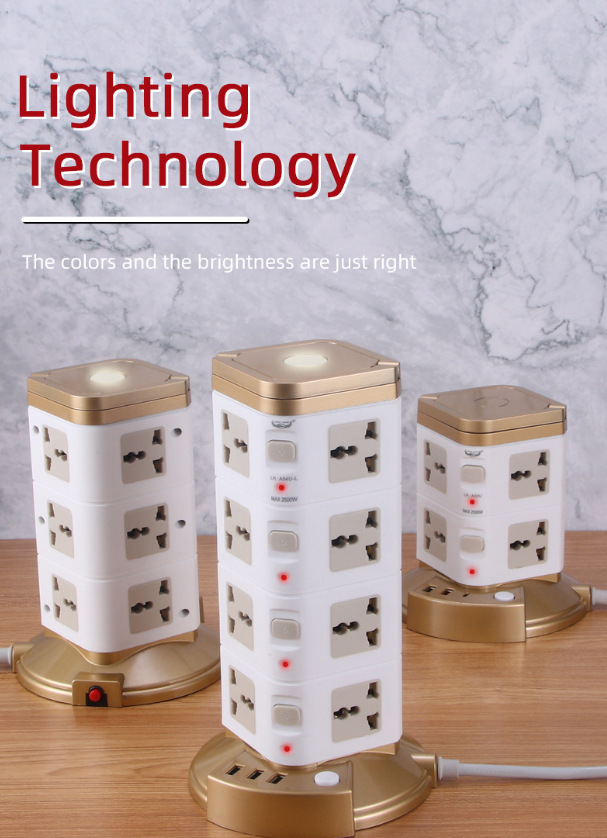 Torre de mano de mano de oficina dorada vertical 3USB PD dos pisos tres pisos cuatro pisos torre enchufe tablero de enchufe