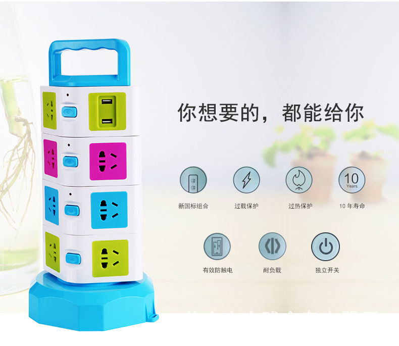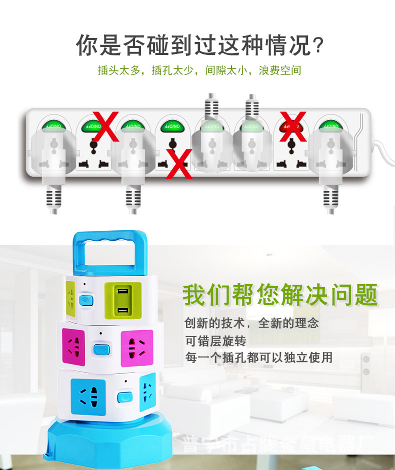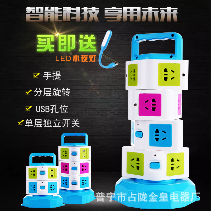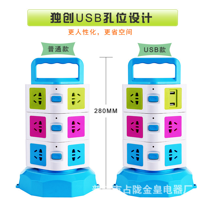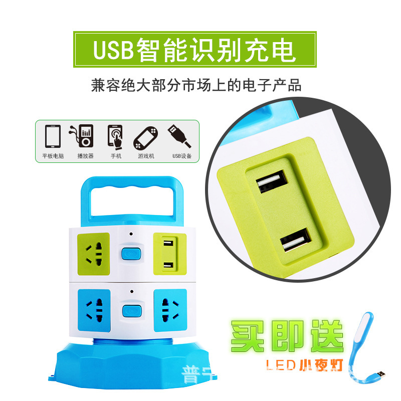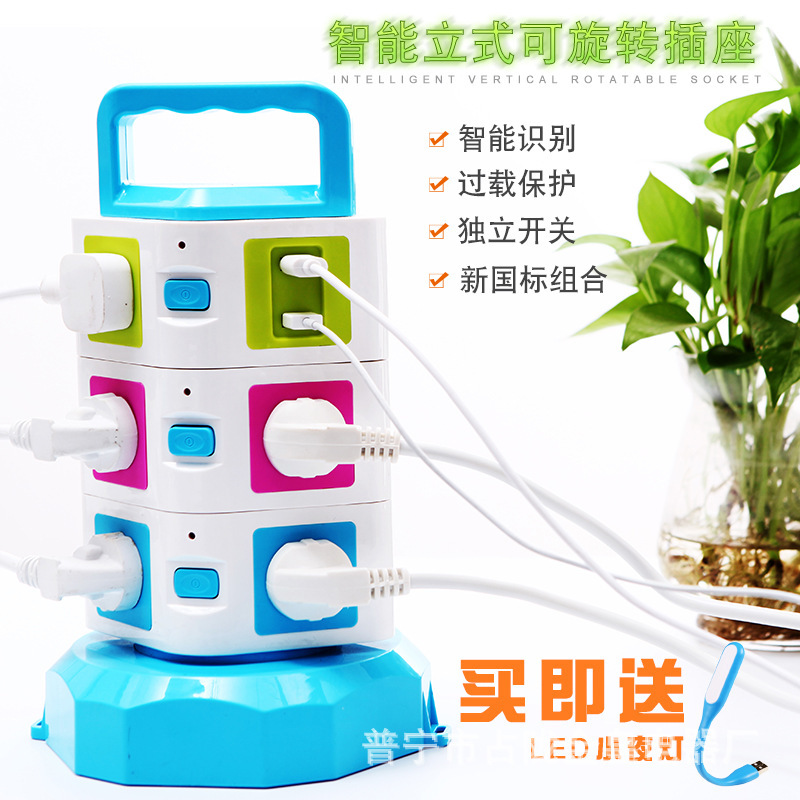 Creativo vertical multifuncional giratorio cables de almacenamiento de oficina a prueba de relámpagos USB carga nuevo enchufe de enchufe