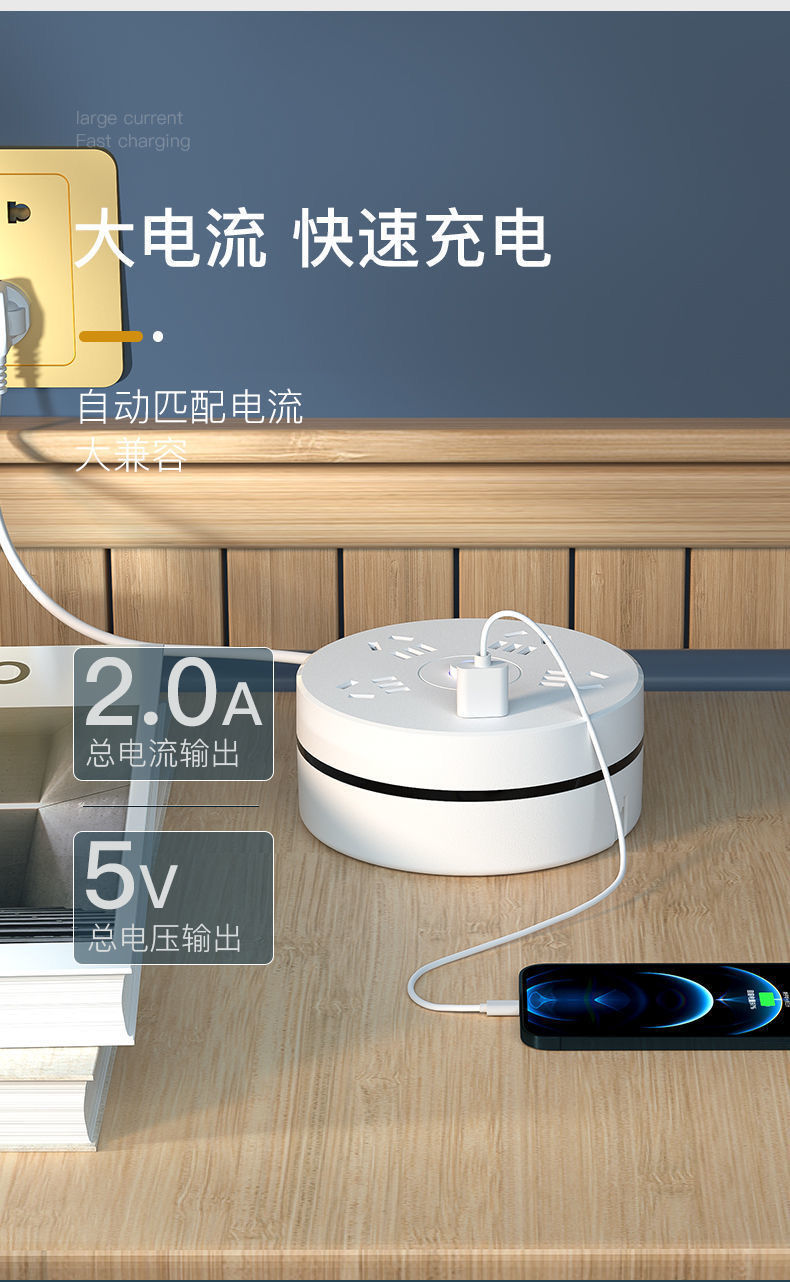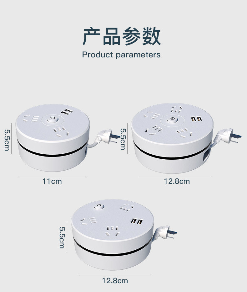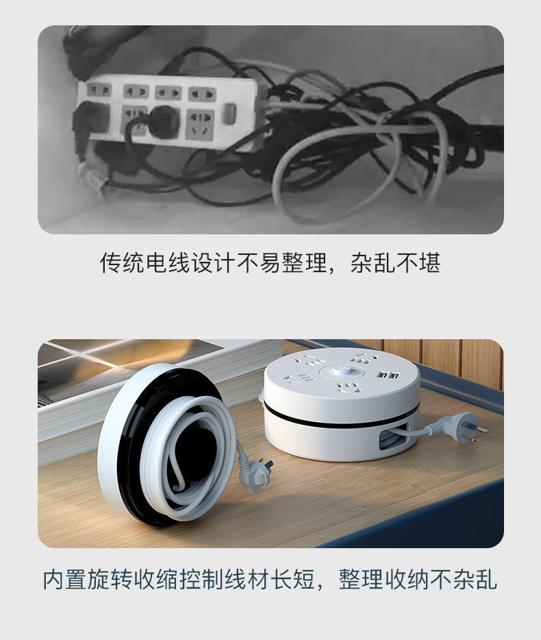 Hogar estirable encogimiento de alambre telescópico USB socket con cable fila de enchufe multi-funcional poroso dormitorio Placa de cableado
