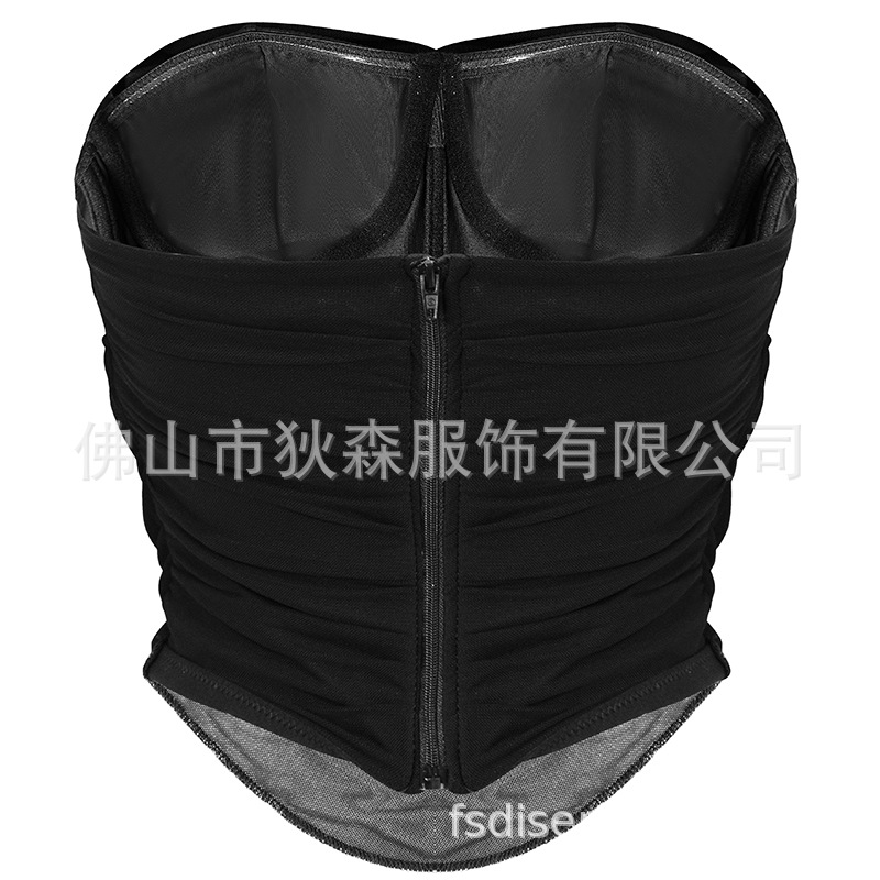 Nuevo estilo transfronterizo europeo y americano plisado malla tubo top hueso de pescado sujetador cintura fruncido abdomen corte fajas corset