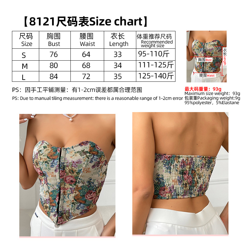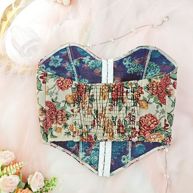 Belleza transfronteriza de mujer caliente vintage jacquard sexy bajo cinturón de pecho hebilla frente chaleco de estilo europeo y americano