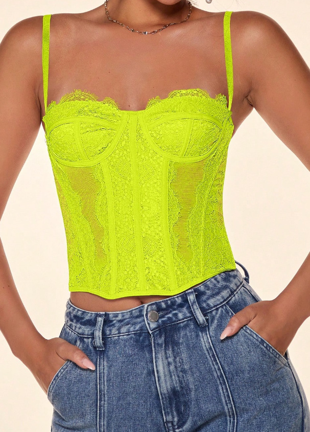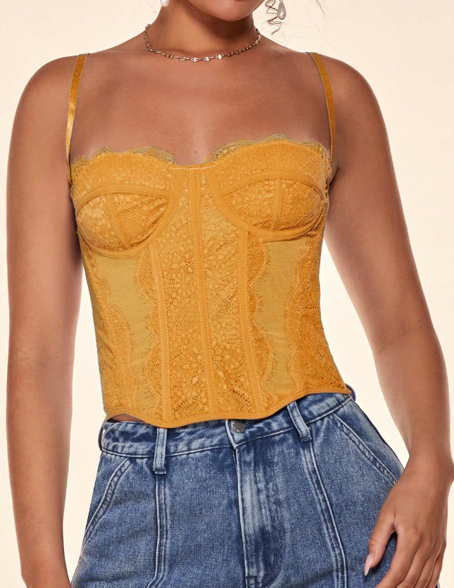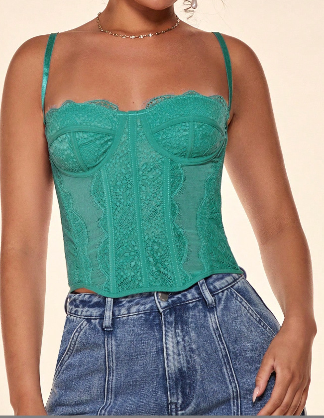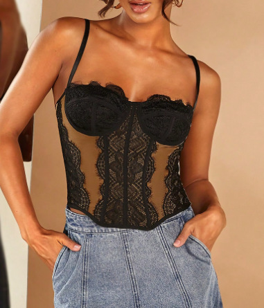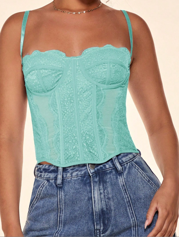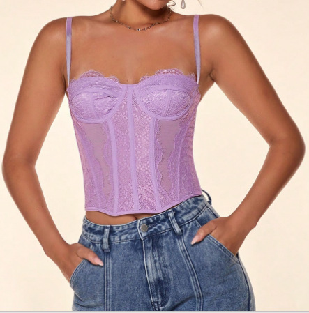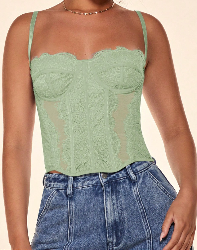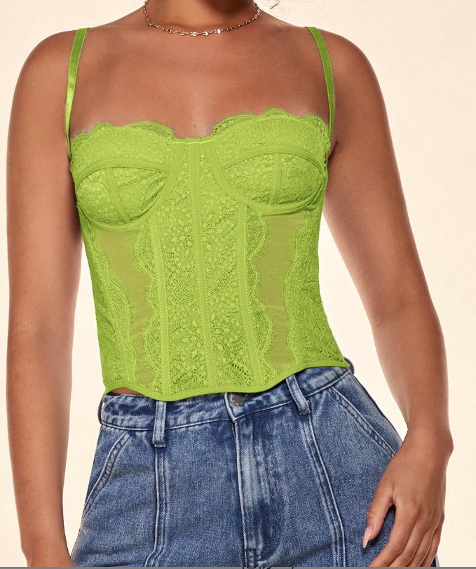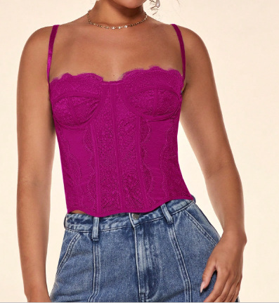 Nuevo sentido femenino de hueso de pez corsé de encaje exterior delgado cintura corta de belleza de espalda gorra de pecho