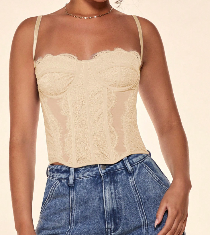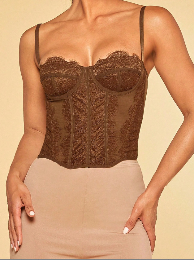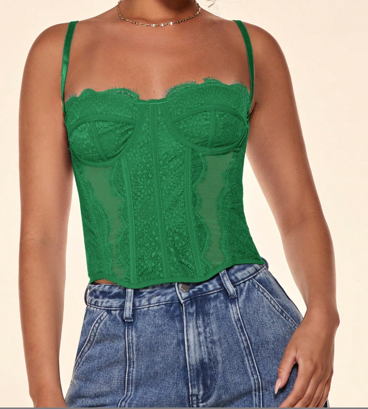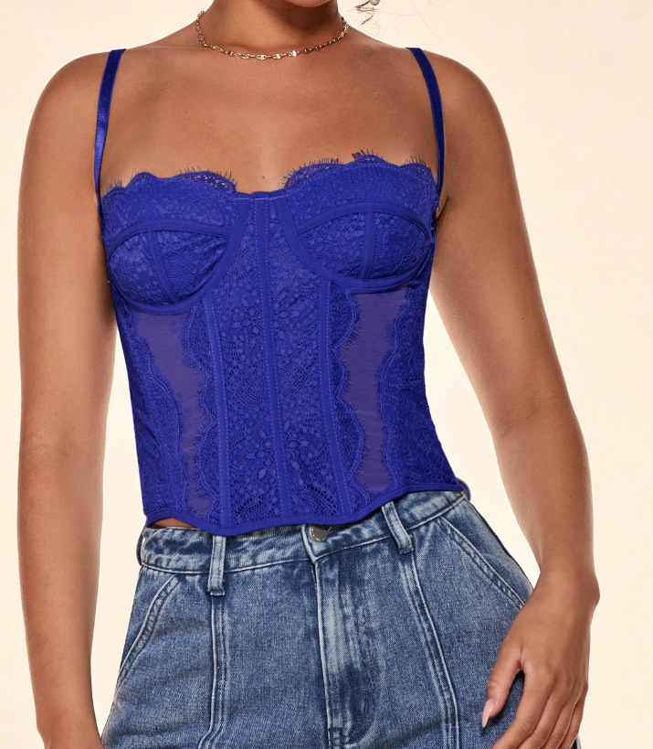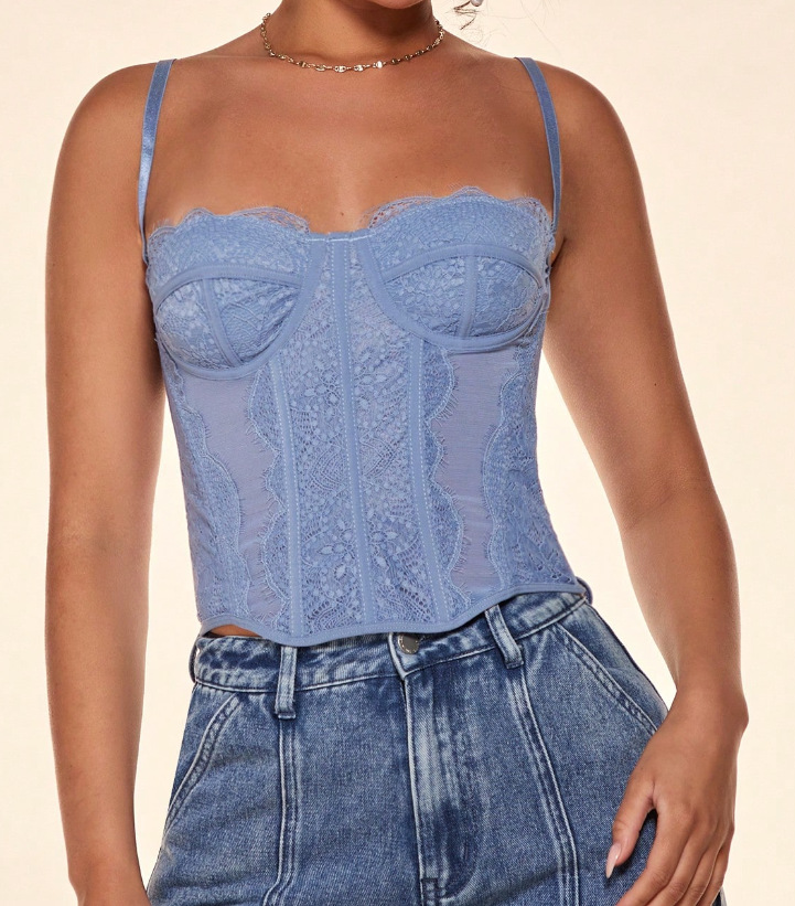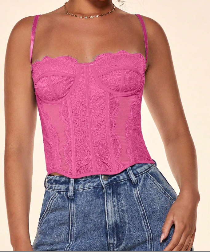 Nuevo sentido femenino de hueso de pez corsé de encaje exterior delgado cintura corta de belleza de espalda gorra de pecho
