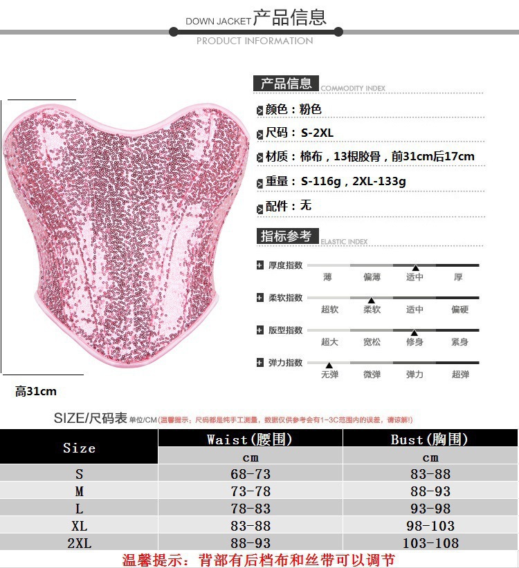 Nuevo rosa sequinilla damas tórax brazo cintura plástico chaqueta Aliexpress suministro de comercio electrónico transfronterizo