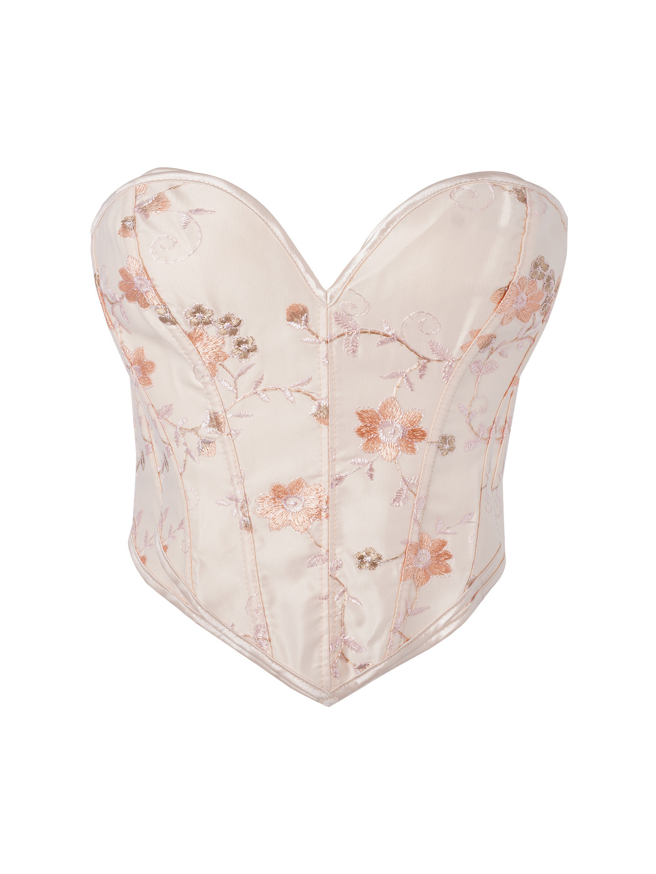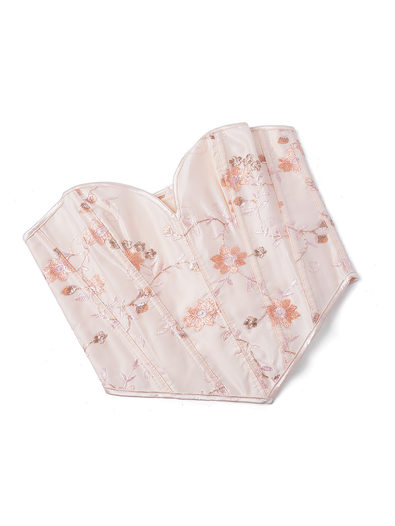 Albaricoque bordado patrón damas corsés top top squeezed chest bracelet corte hueso de pescado vestimenta exterior