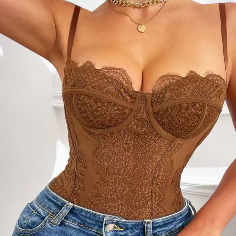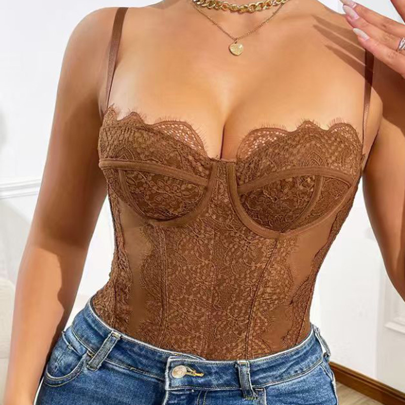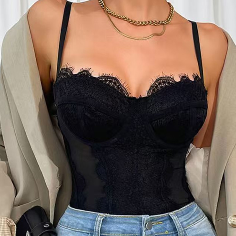 Nuevo cross-border sexy encaje empalme camisole de acero anillo de perspectiva dentro de la correa camisole hueco