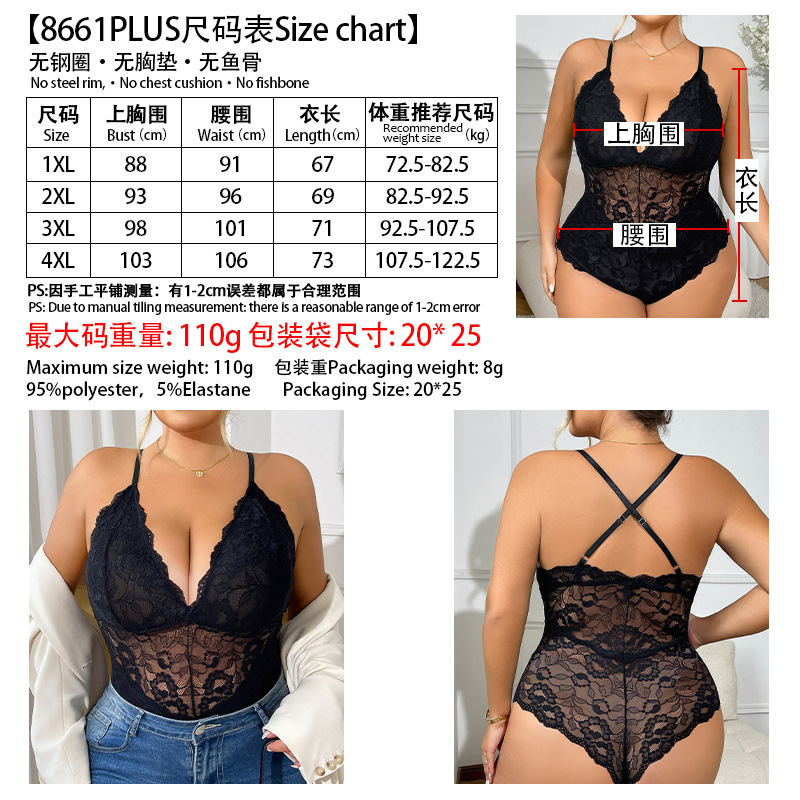 Europa y los Estados Unidos transfronterizos de encaje sexy camiseta de espalda abierta ropa interior con mm gordo comercio exterior Amazon