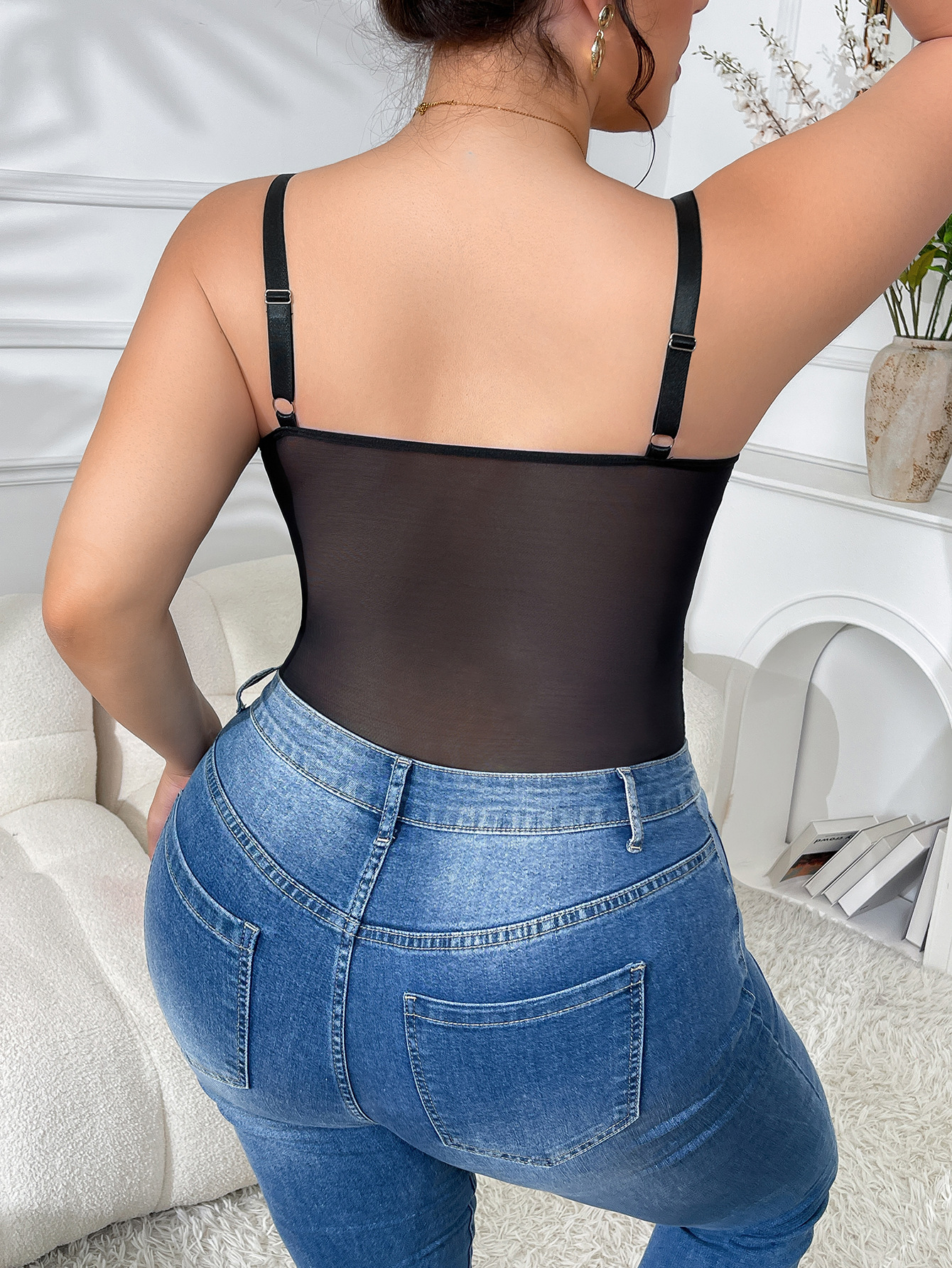Transfronterizos de tamaño grande sexy sin Brexit gorda mm encaje agujero mono con cinturón de hueso de pescado