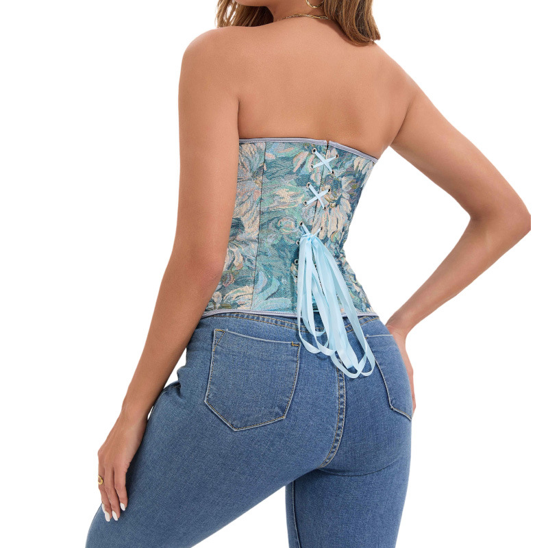 Nuevo estilo café pétalos pintados corte cinturón de cuerpo de belleza cuerpo de soporte de pecho ropa de cuerpo Aliexpress productos transfronterizos