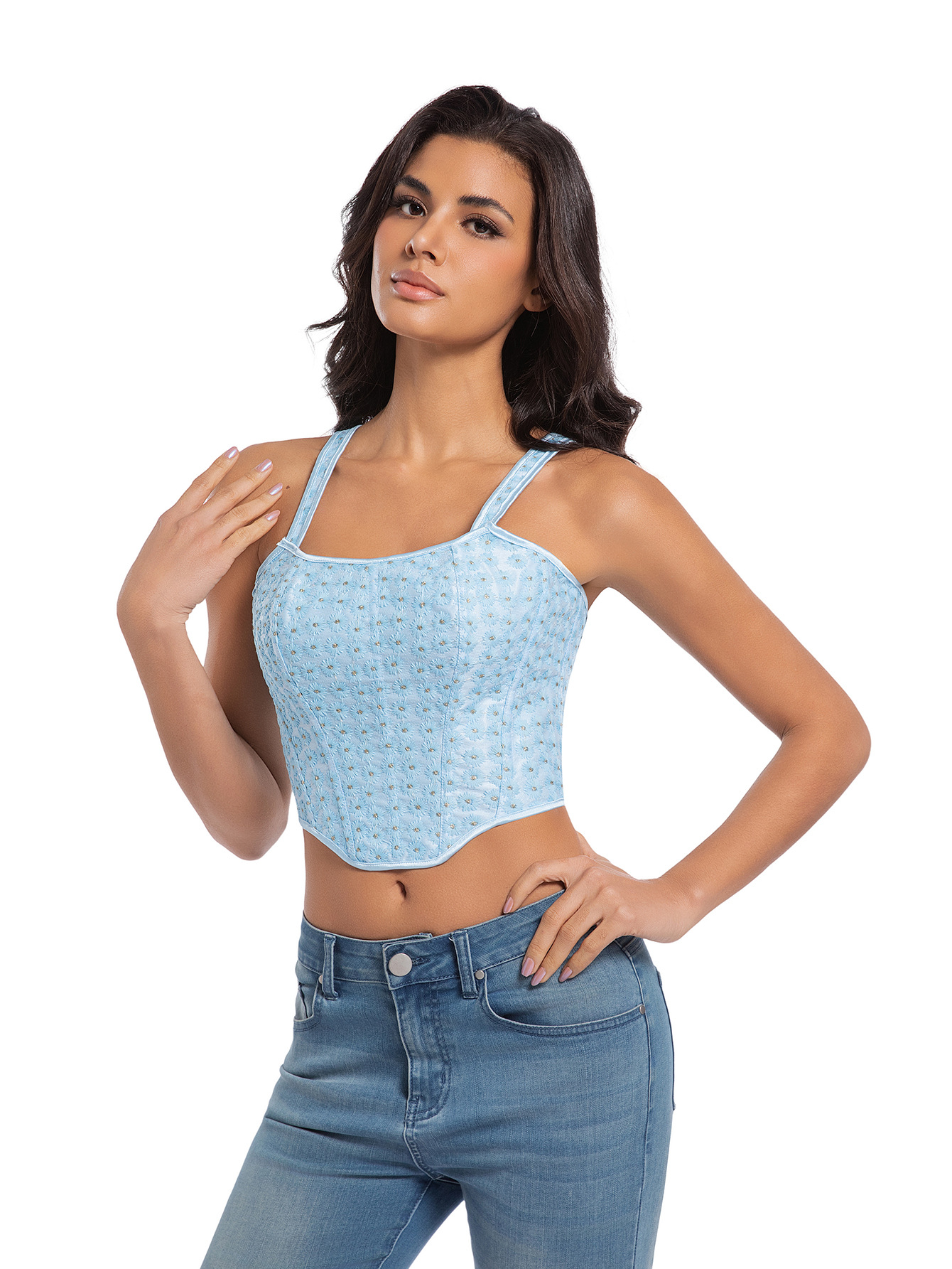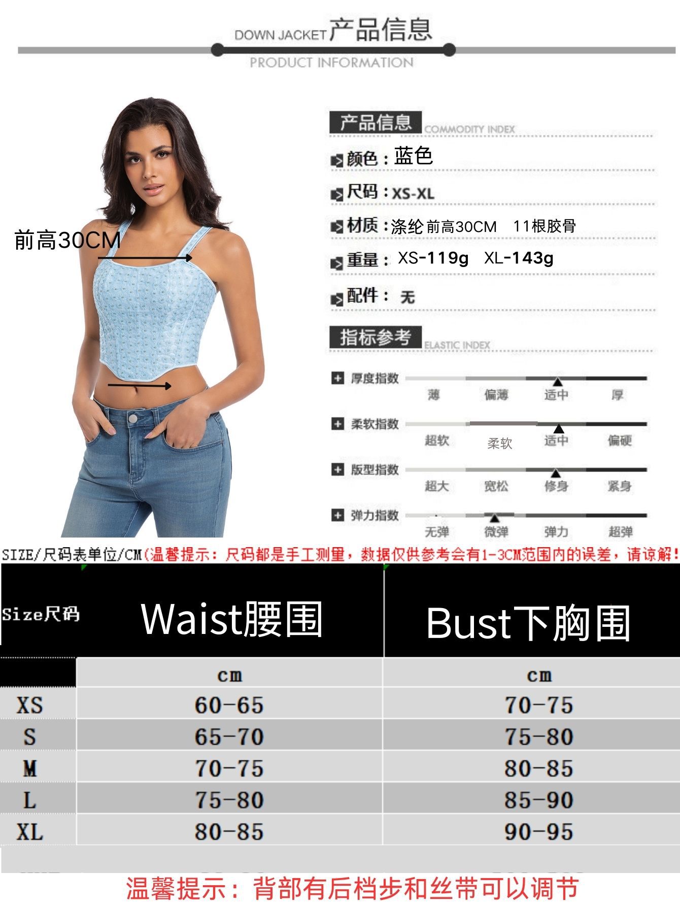 Nuevo estilo francés azul pequeño cinturón de hombro correa de pecho corsé hueso de pez mujer plástico productos transfronterizos