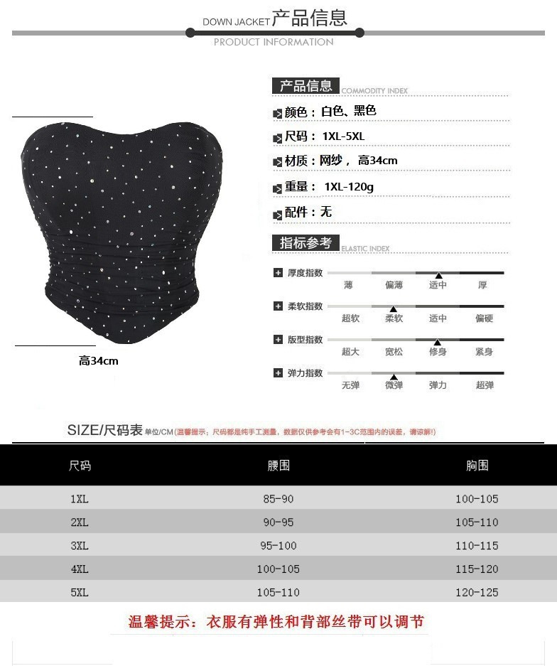 Gran tamaño de tela de pecho con sequinilla, hilo de malla respirable, elástico, chaqueta de pecho, estación independiente de comercio exterior, mercancías transfronterizas
