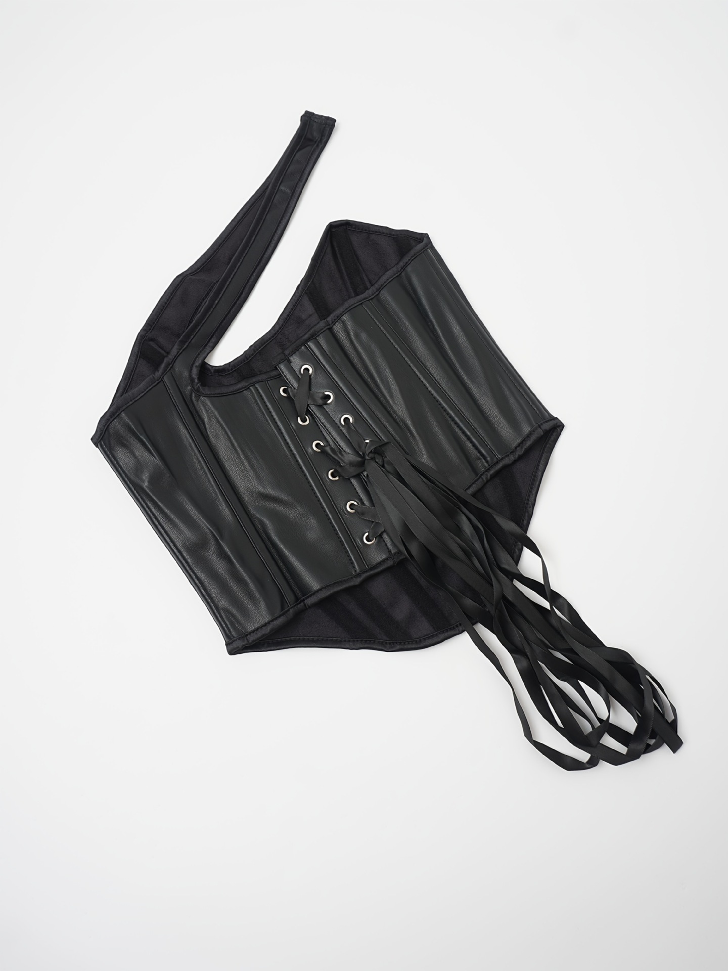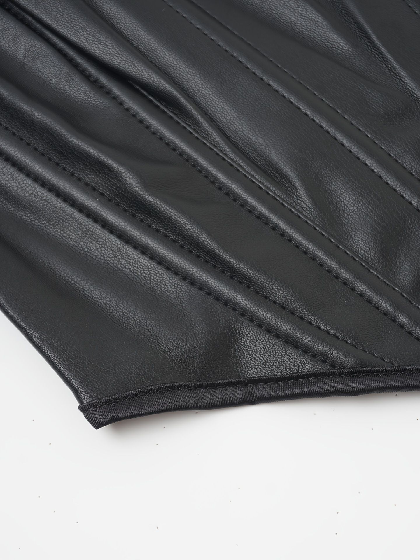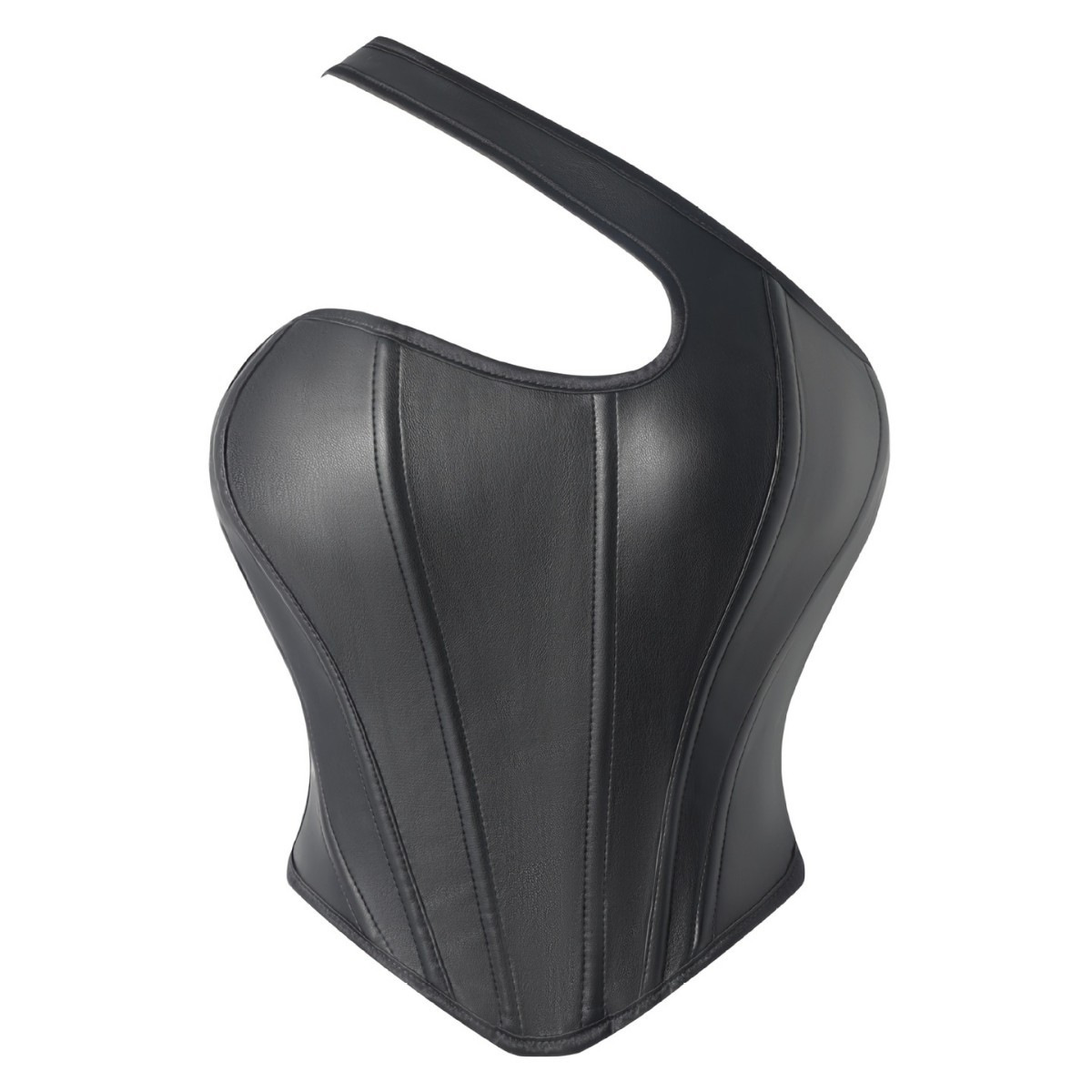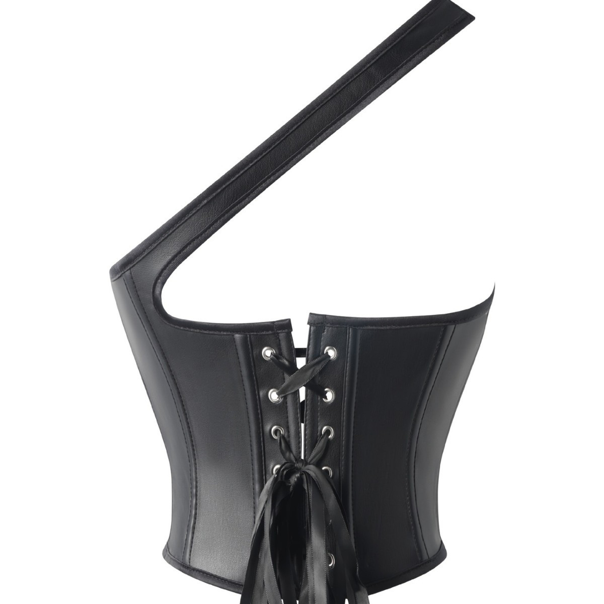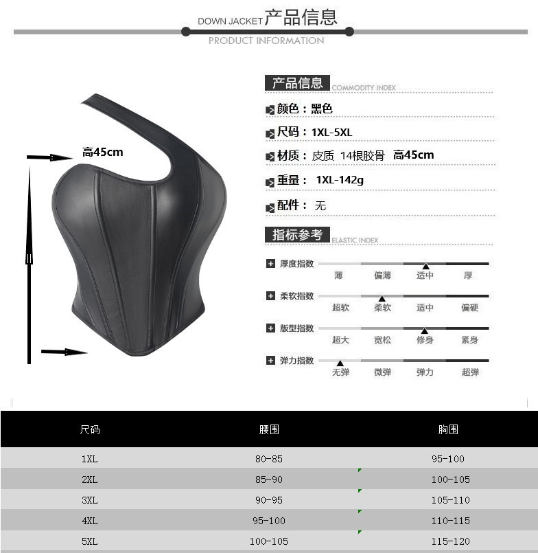 Gran tamaño europeo y americano chaleco plástico de cuero PU un hombro chaleco de hueso de pescado corsé sexy cintura descubierta comercio exterior al por mayor